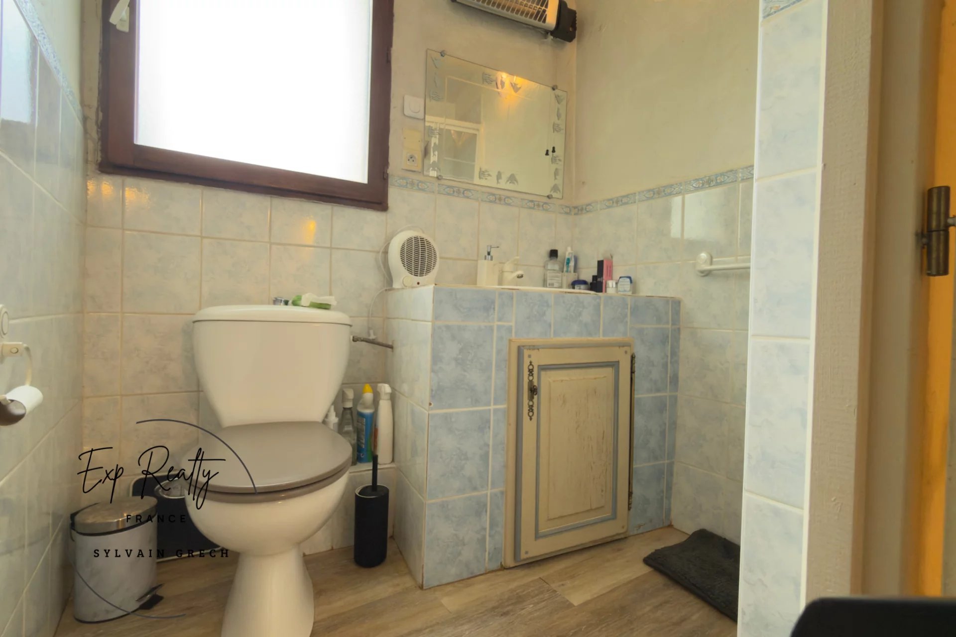 Au rez-de-chaussée, vous trouverez un WC indépendant ainsi que l’accès à un grand garage de 25 m², idéal pour stationner votre véhicule et pour du rangement supplémentaire.
