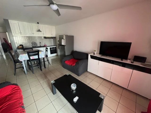 L'appartement comprend 1 entrée, 1 séjour donnant sur 1 varangue fermée et 1 balcon, 1 cuisine ouverte, 1 WC, 1 salle d'eau, 1 chambre d'environ 15m² avec une varangue fermée d'environ 7m² et 1 place de parking en parking sous-sol.