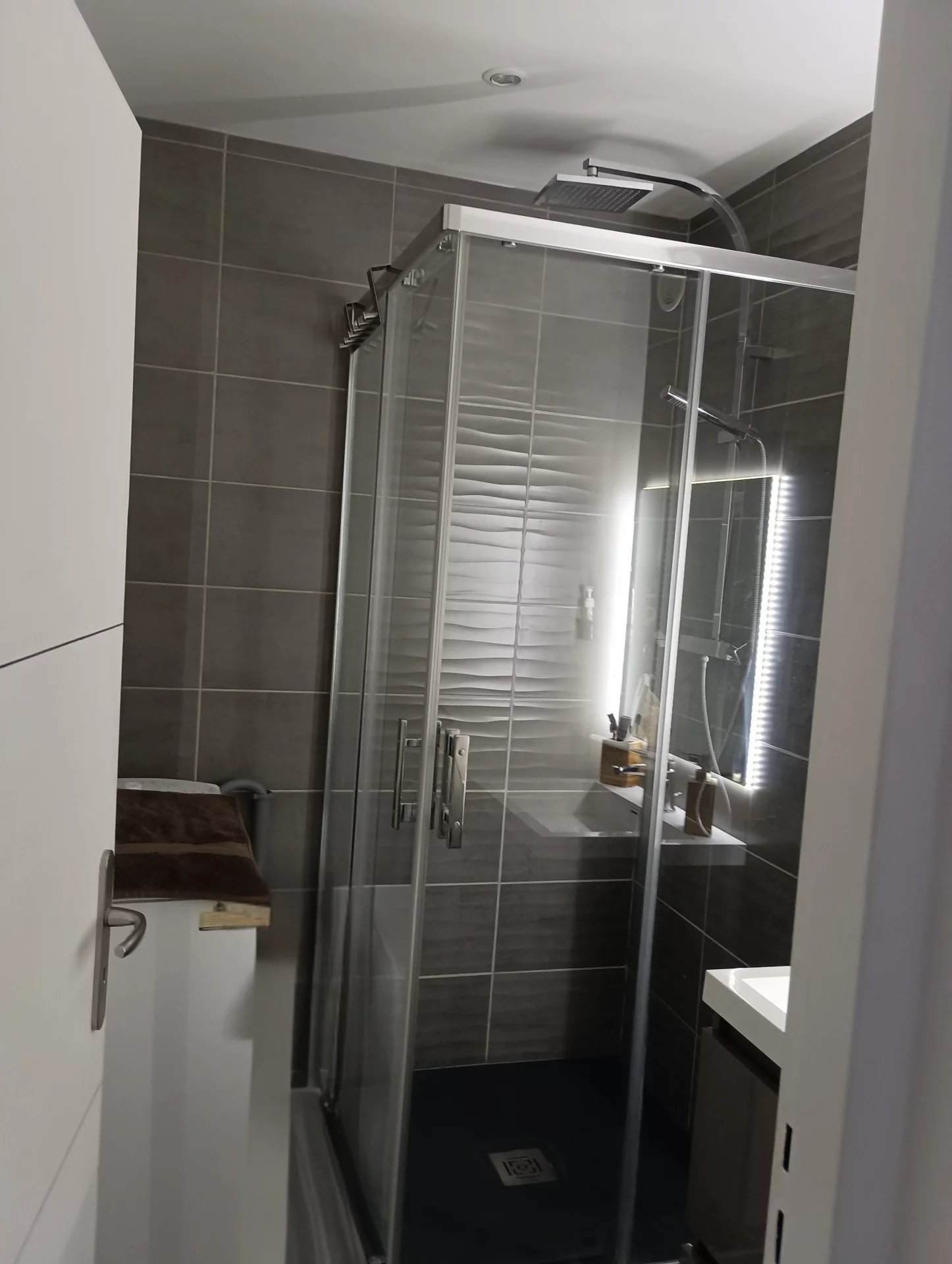 Une salle d'eau moderne équipée d'une machine à laver, des WC séparés complètent ce bien fonctionnel et prêt à vivre.