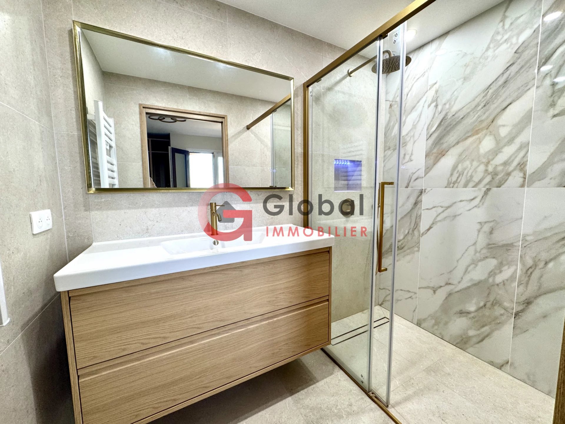 La salle d'eau, élégante et actuelle, est équipée d'une douche à l'italienne avec des matériaux de qualité.