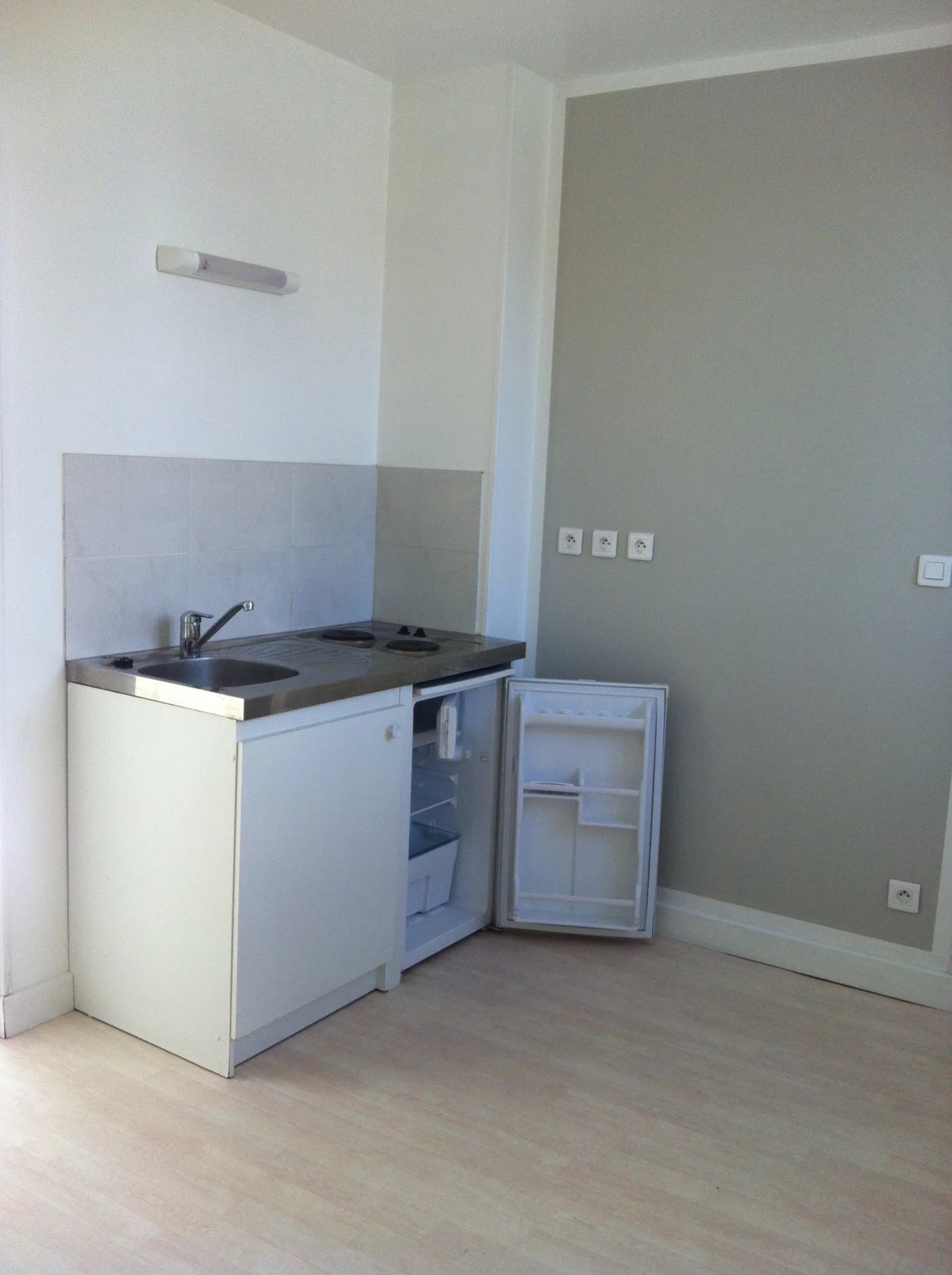 Appartement situé au 1er étage d'un immeuble ancien comprenant une entrée avec coin kitchenette, une pièce principale, deux chambres, une salle de douche avec wc.