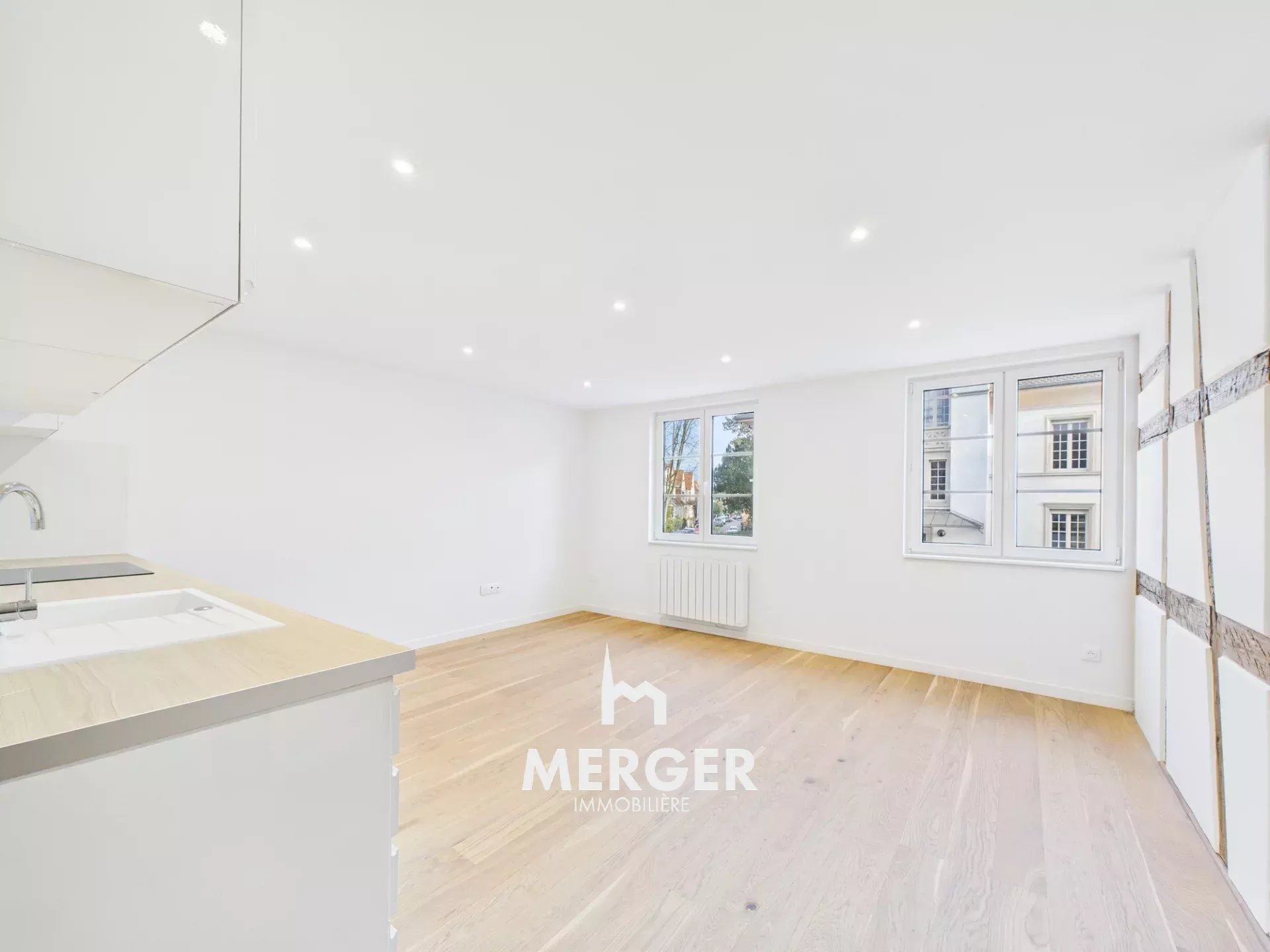 A deux pas des commerces et des transports en communs, situé au cœur de la Robertsau, au premier étage d’une petite copropriété à colombages de 6 lots principaux, l'IMMOBILIERE MERGER vous propose cet appartement traversant de 32 m², entièrement rénové avec goût.