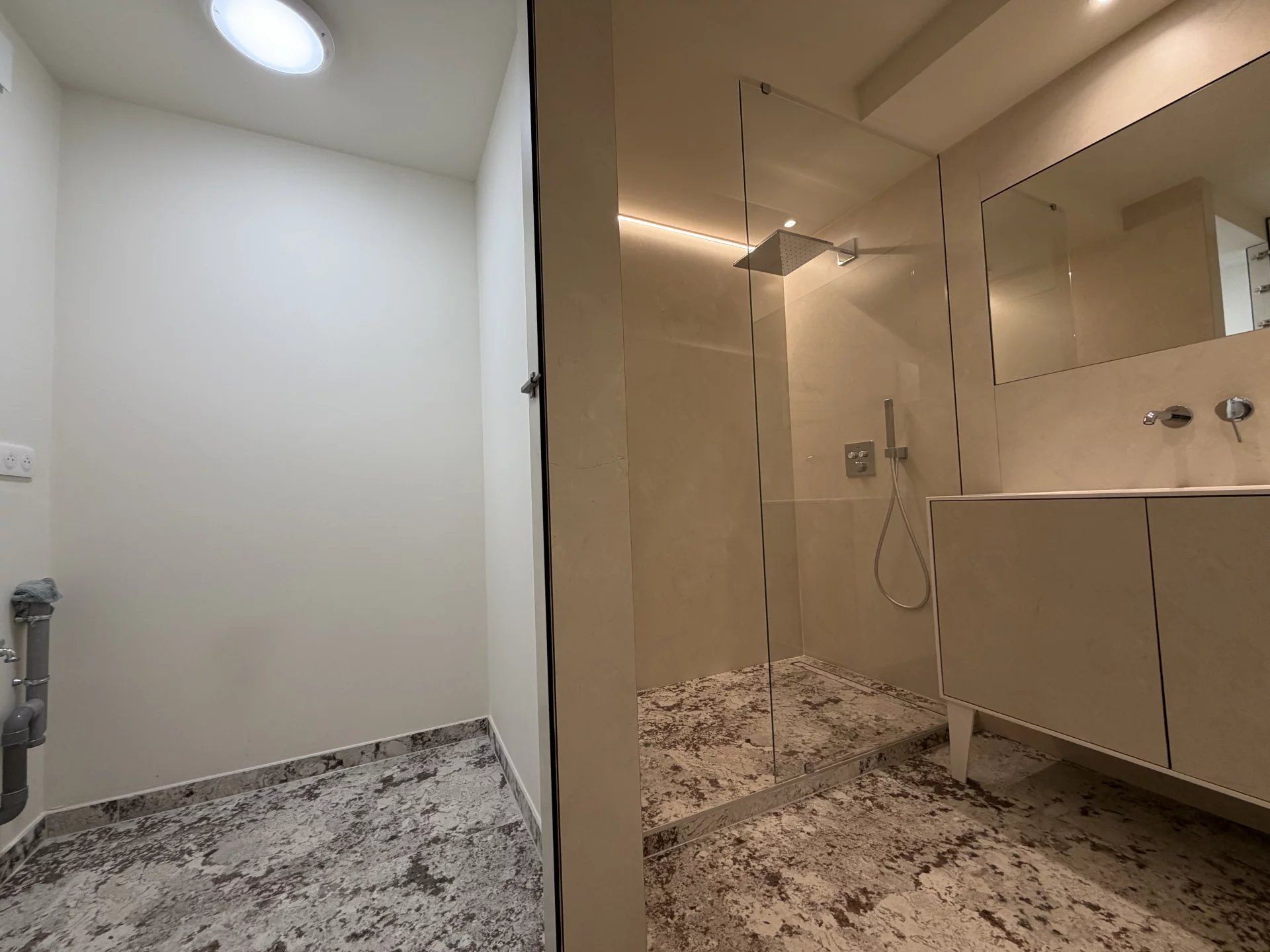 Chauffage individuel au sol, baies vitrées avec sécurité, volets électriques, climatisation réversible, porte blindée, isolation intérieure des murs.