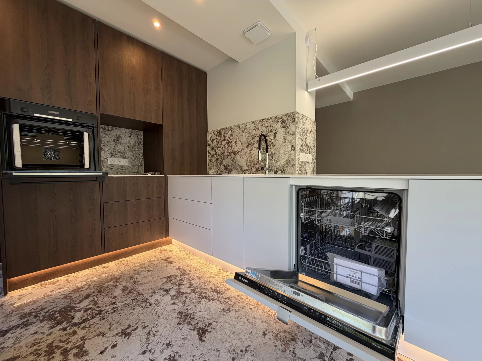 - D'une pièce de vie avec cuisine ouverte d'environ 46m2 accédant à 1 terrasse de 13m2