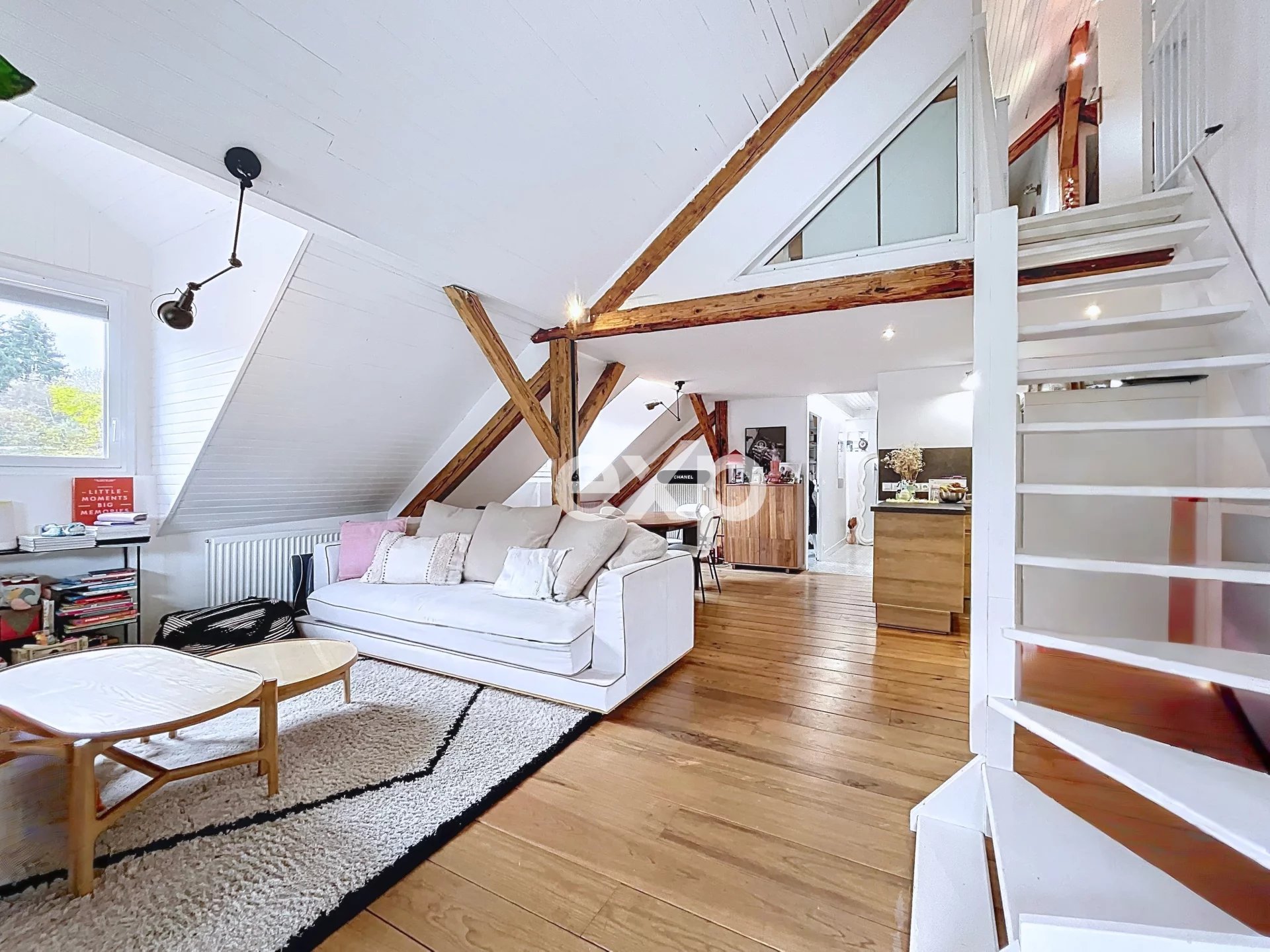 Avec 147,07 m² utiles (dont 94,89 m² Carrez), ce bien rare séduit dès l’entrée par son atmosphère unique : poutres apparentes, volumes généreux, hauteur sous plafond, et un esprit chalet contemporain parfaitement maîtrisé.