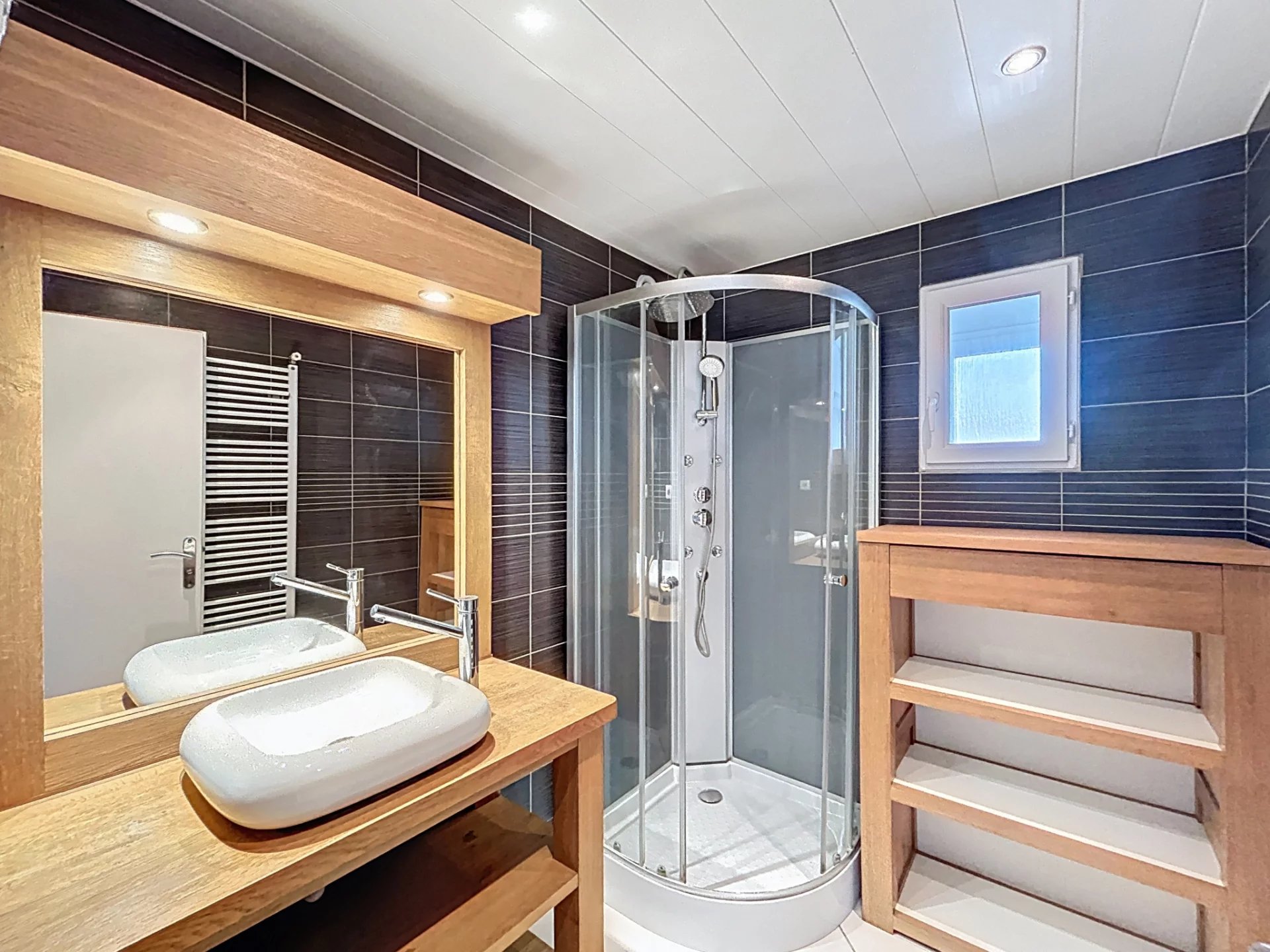 Il se compose d'une grande pièce à vivre de 40m2 (cuisine équipée de 15m2 ouverte sur le salon séjour de 25m2), de 2 chambres (possibilité d'en faire une 3 -ème), d'une salle de bains séparée et d'un WC séparé. Une cave complète ce bien.