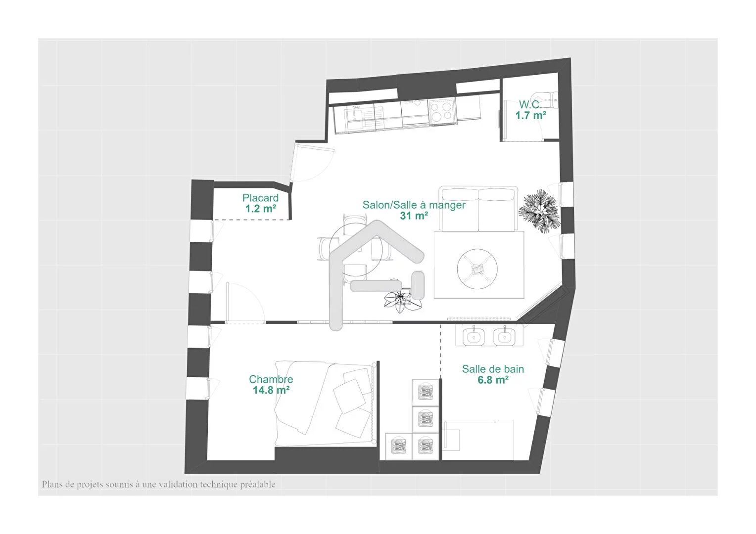 - **Superficie :** 58 m², parfait pour un projet d'aménagement sur mesure.