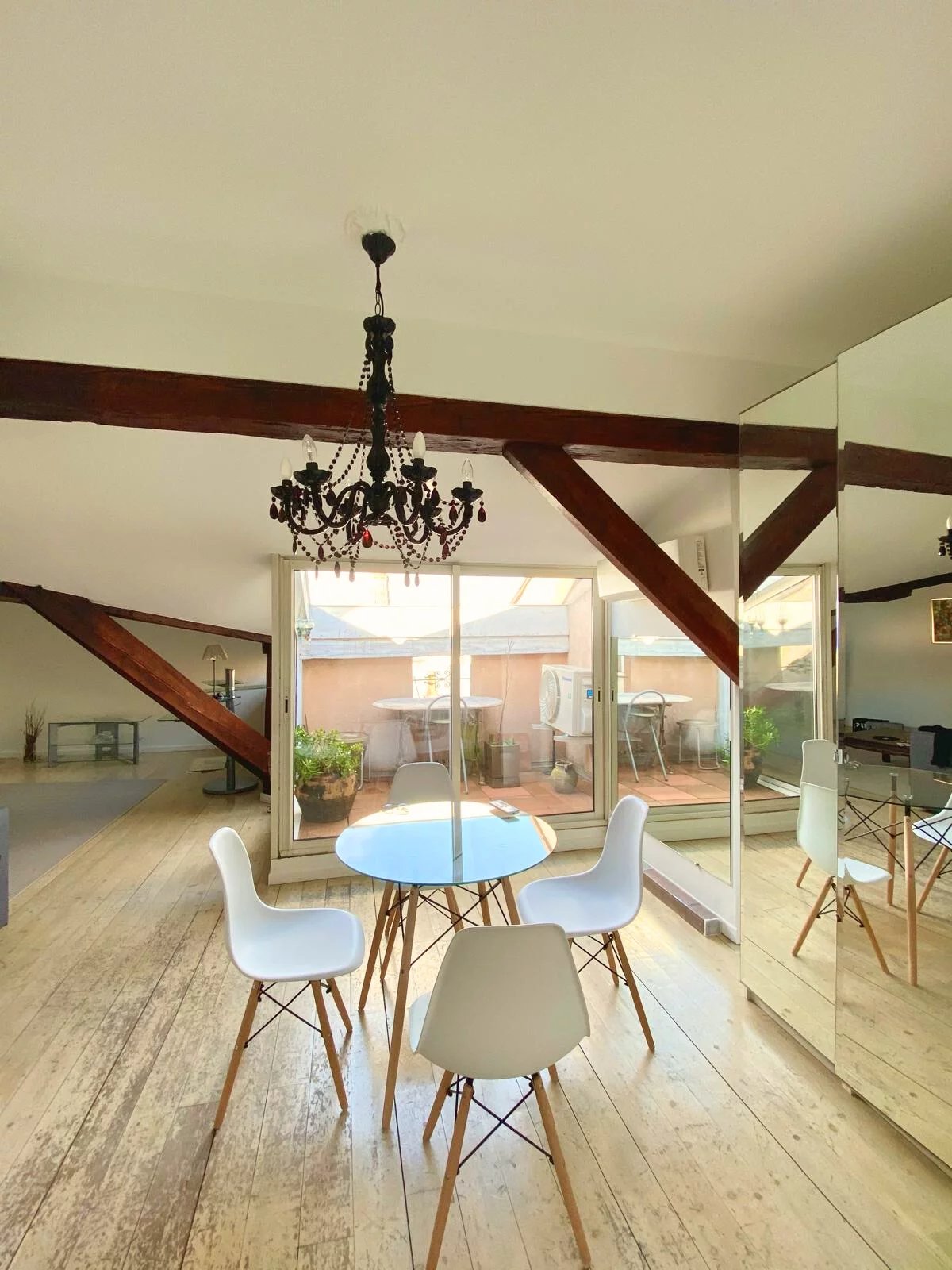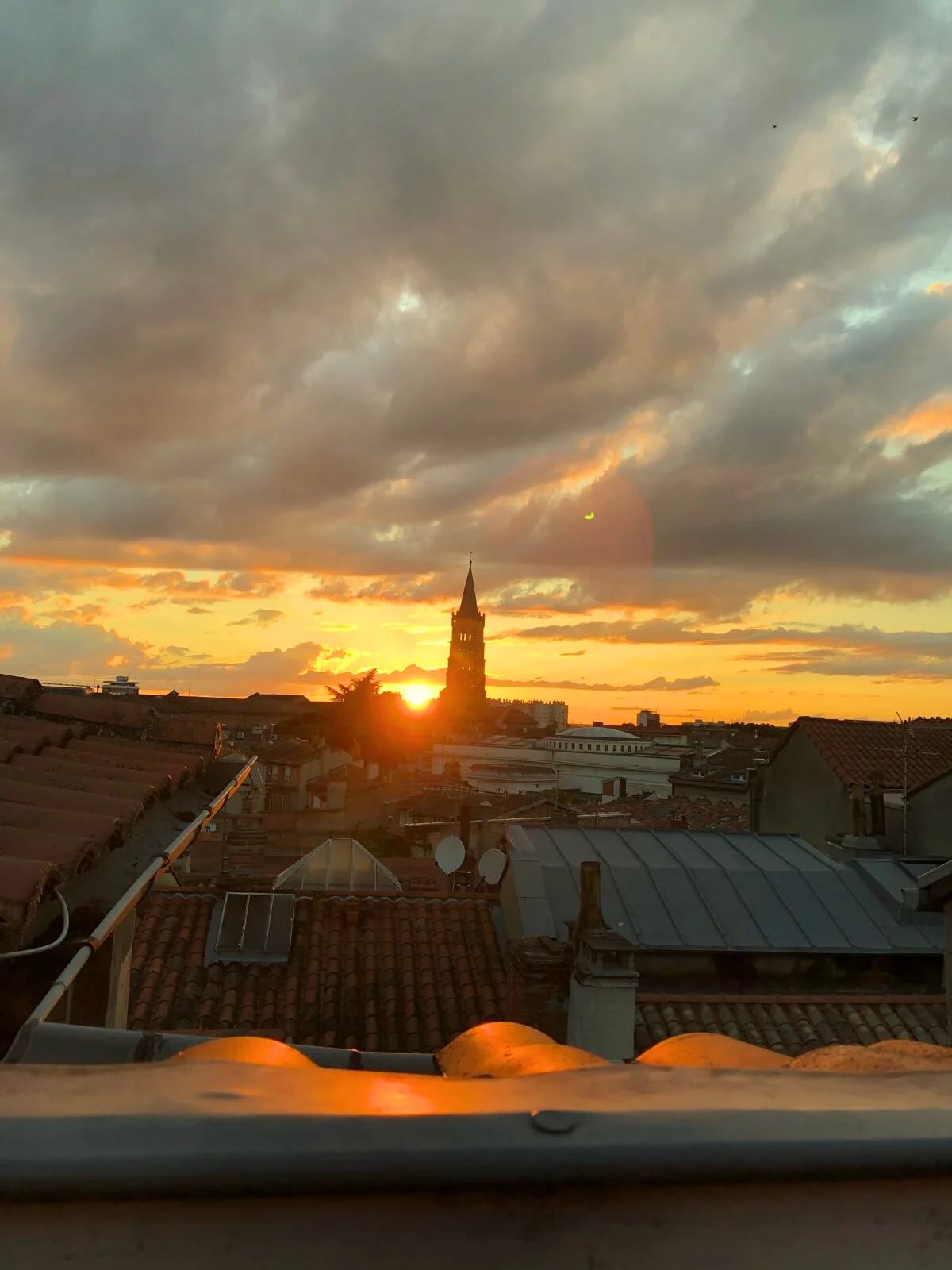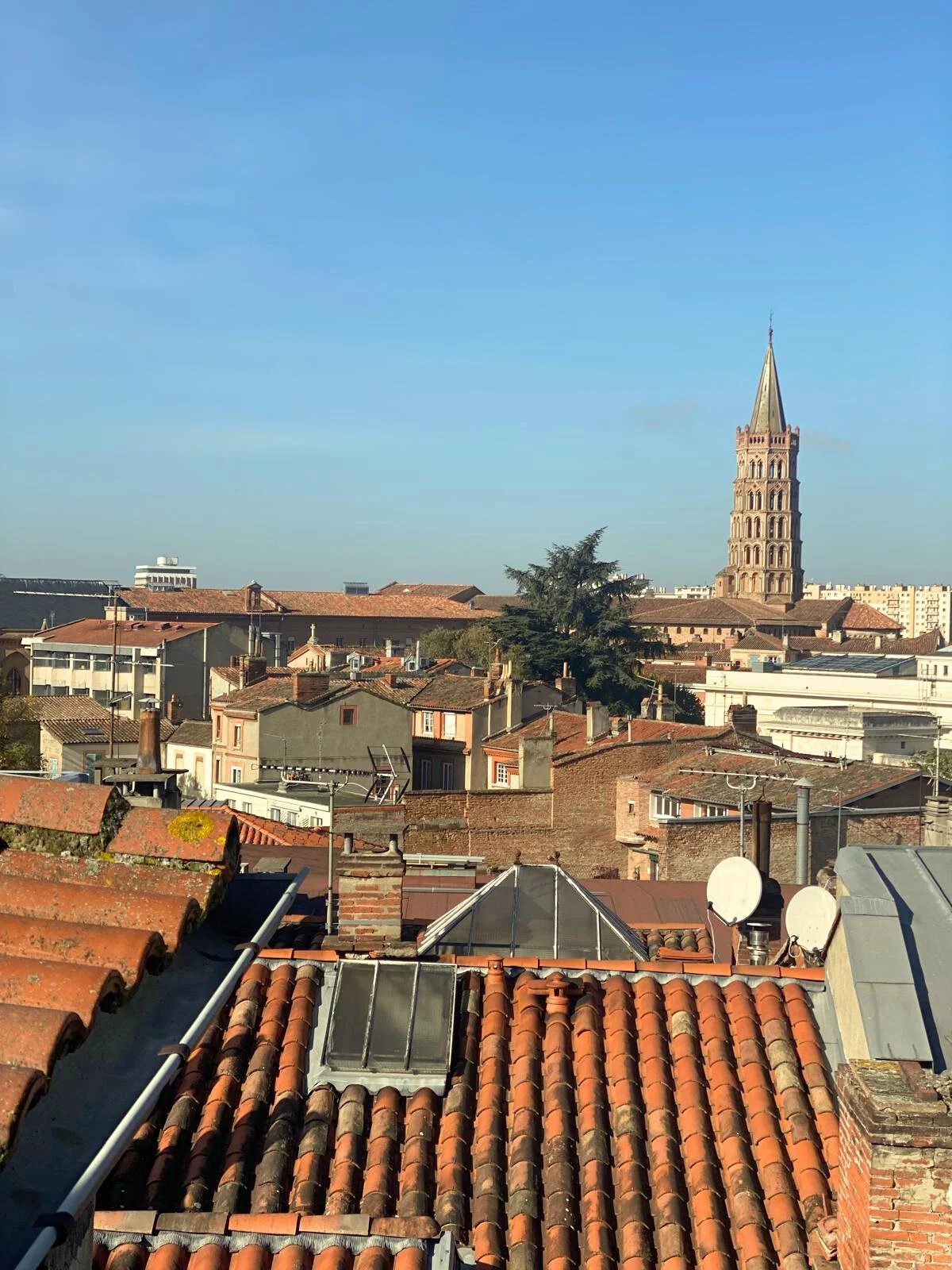 En plein cœur de Toulouse dans un immeuble Haussmannien avec vue sur Saint Sernin, appartement T2 au 5ème et dernier étage avec ascenseur dans une petite copropriété de huit lots d'habitation ; ce bien au calme total comprend une entrée, un séjour/salle à manger, une cuisine séparée, équipée et aménagée, une chambre avec placards et une salle de bains, sa terrasse offre une vue plongeante sur les toits de la ville rose; cet appartement est agrémenté d'une cave; situé en plein centre ville, il offre un cadre de vie pratique, proche de toutes les commodités diverses et variées: commerces, écoles, universités, transports.