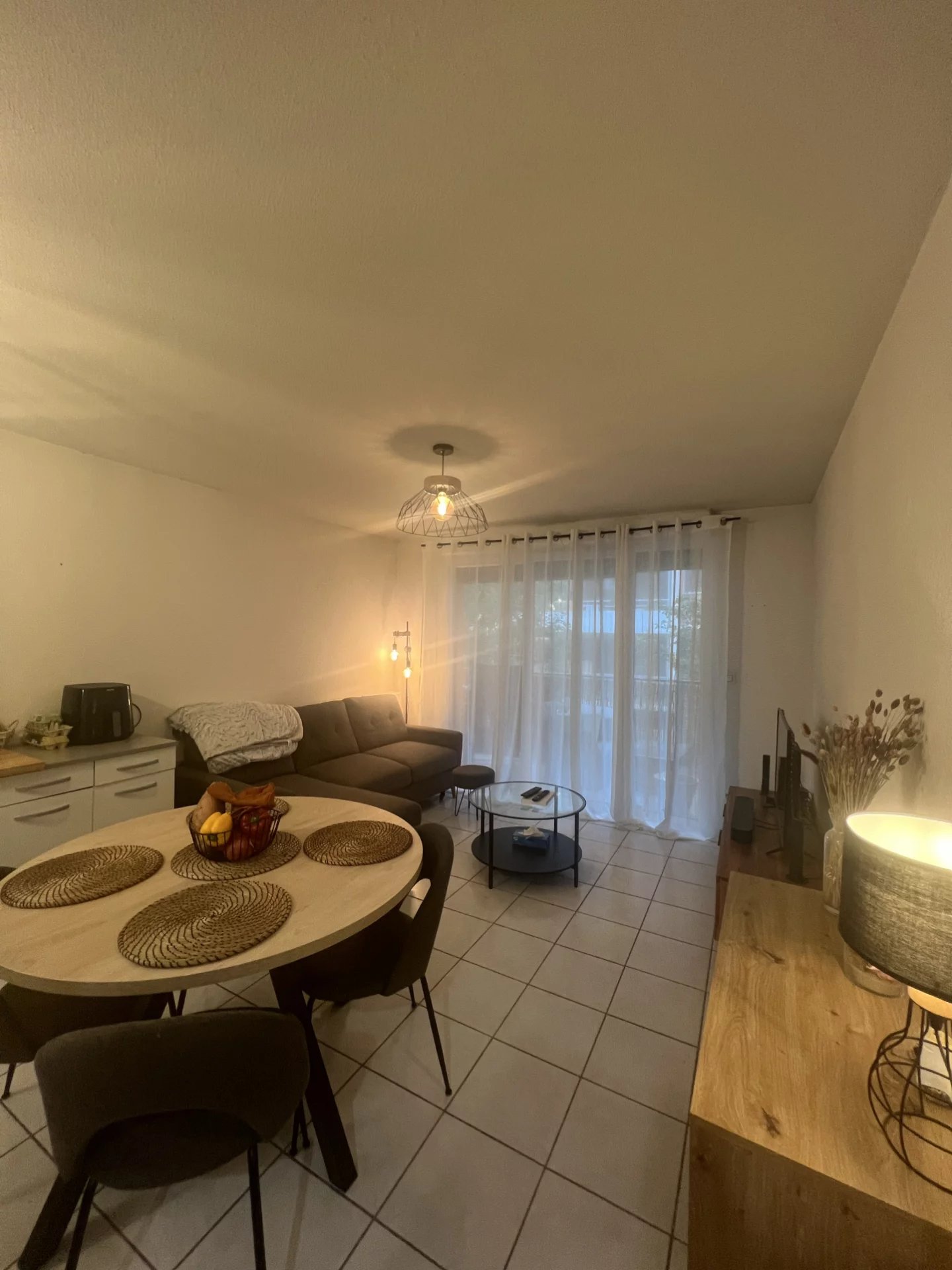 Situé au 1er étage avec ascenseur, l'appartement est composé d'une entrée avec placards puis d'un agréable séjour de plus de 20m2 avec une cuisine ouverte et semi équipée donnant sur une spacieuse terrasse de plus de 10m2 pouvant facilement accueillir une table à manger et un salon de jardin. Au coin nuit, vous bénéficiez d'une chambre et une salle de bain avec WC de plus de 5m2. Les + : chauffage électrique indivuduel, volets roulants, local vélo, etc....
