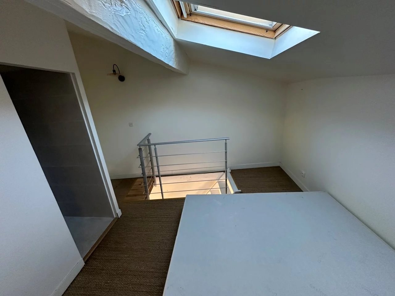 T1bis/T2 de 27,81m2 au sol (25,72m2 loi Carrez) en duplex, situé en 1er (et 2ème) étage d’un bâtiment en chartreuse d’une petite copropriété.