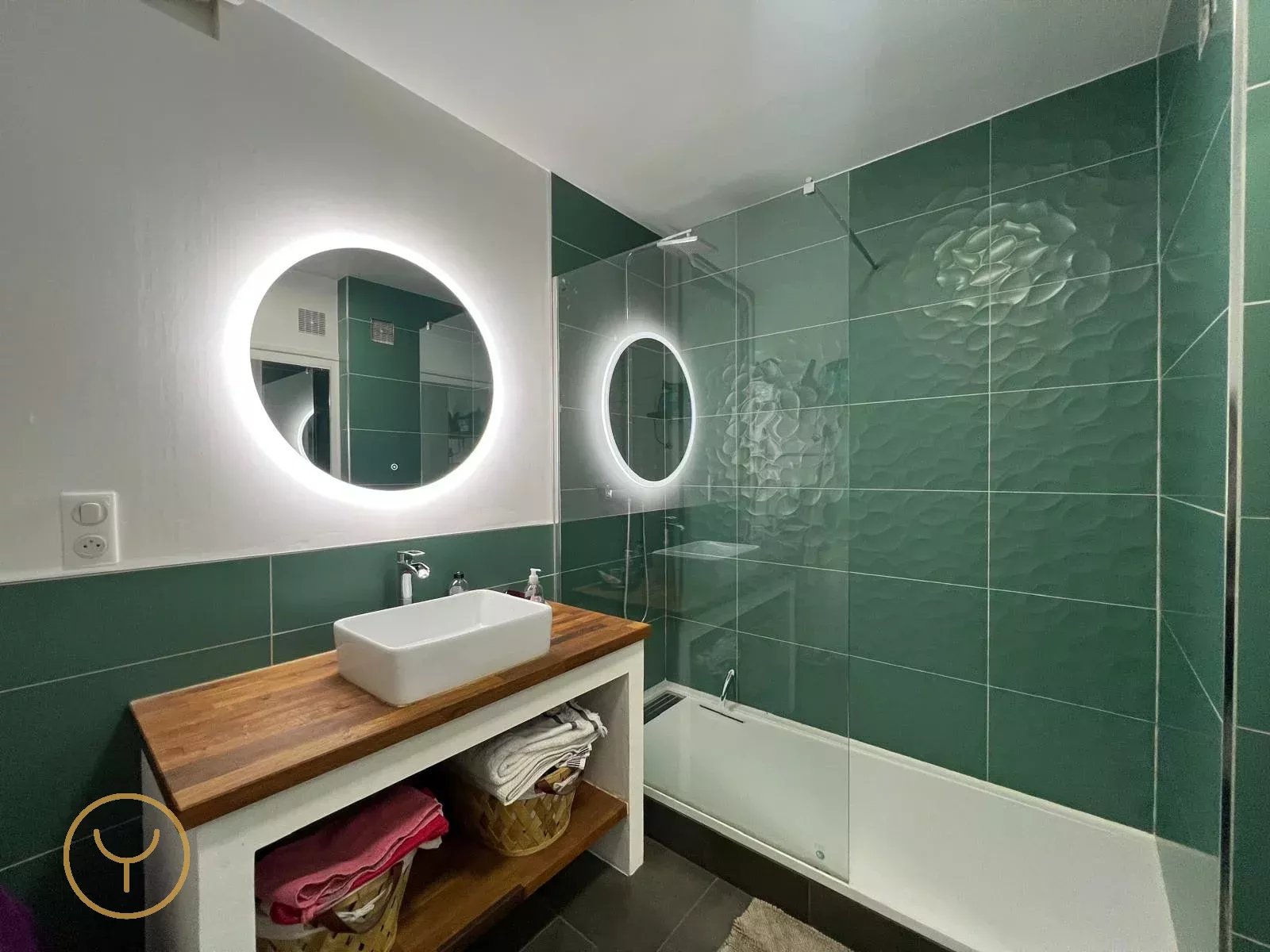 La salle de douche, également récente, présente des matériaux contemporains et est conçue pour le bien-être, offrant un espace de détente au quotidien.