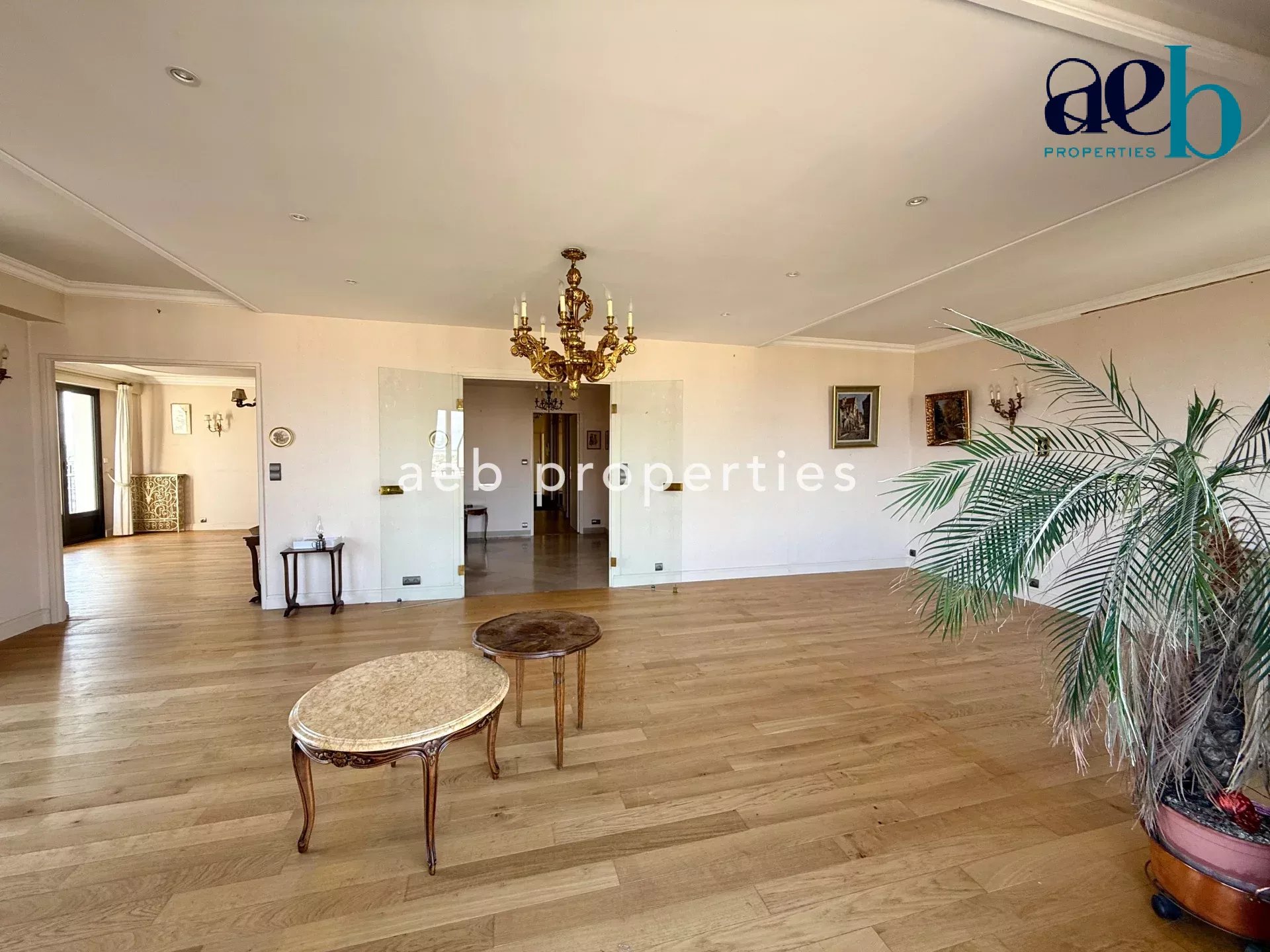 Il se compose d’une grande entrée avec placard, d’un double séjour traversant de 42m² avec balcons, une salle à manger de 27m² aussi ouverte sur balcon, une cuisine aménagée et semi-équipée. Un dégagement avec de nombreux rangements dessert quatre grandes chambres de 15 à 22m², dont deux avec placards et deux avec balcon, une salle de douche, une salle de bains, et deux toilettes séparés. Deux caves saines et un box en sous-sol complètent ce bien.