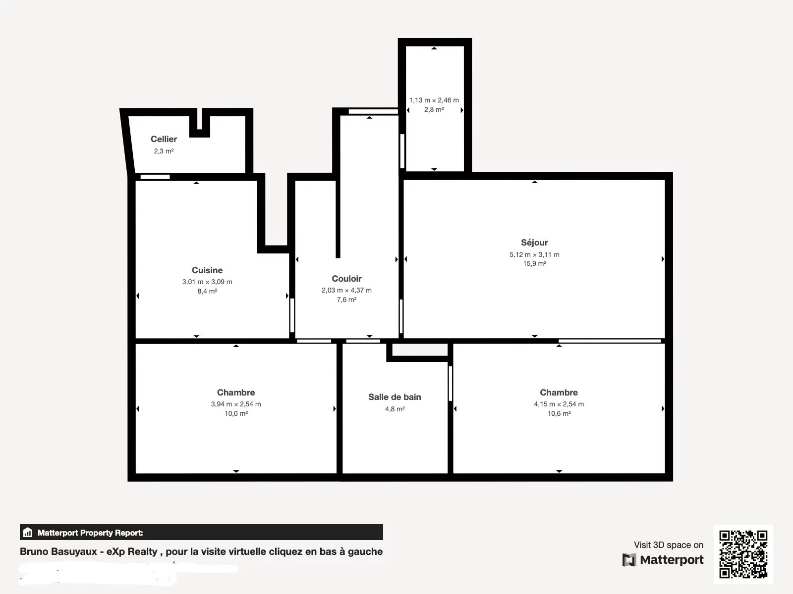 84 500 €eXp Realty vous propose dans le quartier de la GARE, cet appartement de type 3 de 58,28 m2 au 4eme étage avec ascenseur et balcon, vous aurez un hall , une pièce de rangement, dégagement , une pièce de vie de 15,30m2 lumineuse , deux chambres de 10,22m2 et 9,70m2 partagées par une salle de douche de 4,80m2 , une cuisine équipée recente de 8,22m2 avec un cellier attenant, chauffage collectif gaz, fenetres pvc, cave , belle vue sur le centre historique du bouchon de Champagne, commerces et services plus gare à 300m ; charges maitrisées de 170 euros mensuel avec eau froide eau chaude et chauffage . à visiter .