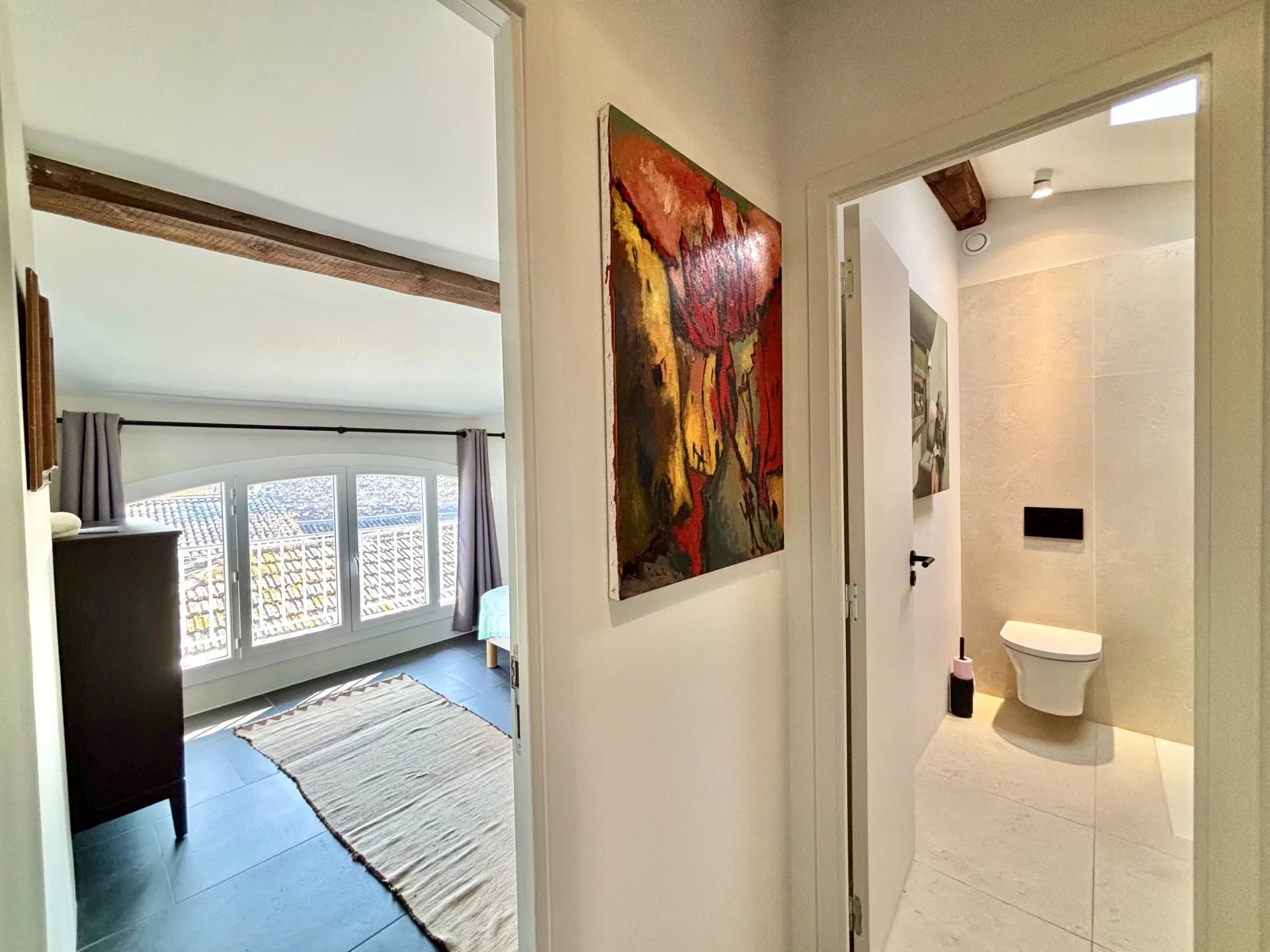 Découvrez cet appartement en duplex de village unique située dans le pittoresque village de Valbonne, parfaite pour ceux qui recherchent confort et modernité. Avec une surface d'environ 140 m² and one of the best views over the village , cet appartement spacieux est climatisée et équipée de double vitrage. Elle vient d'être entièrement rénovée par une styliste contemporaine.