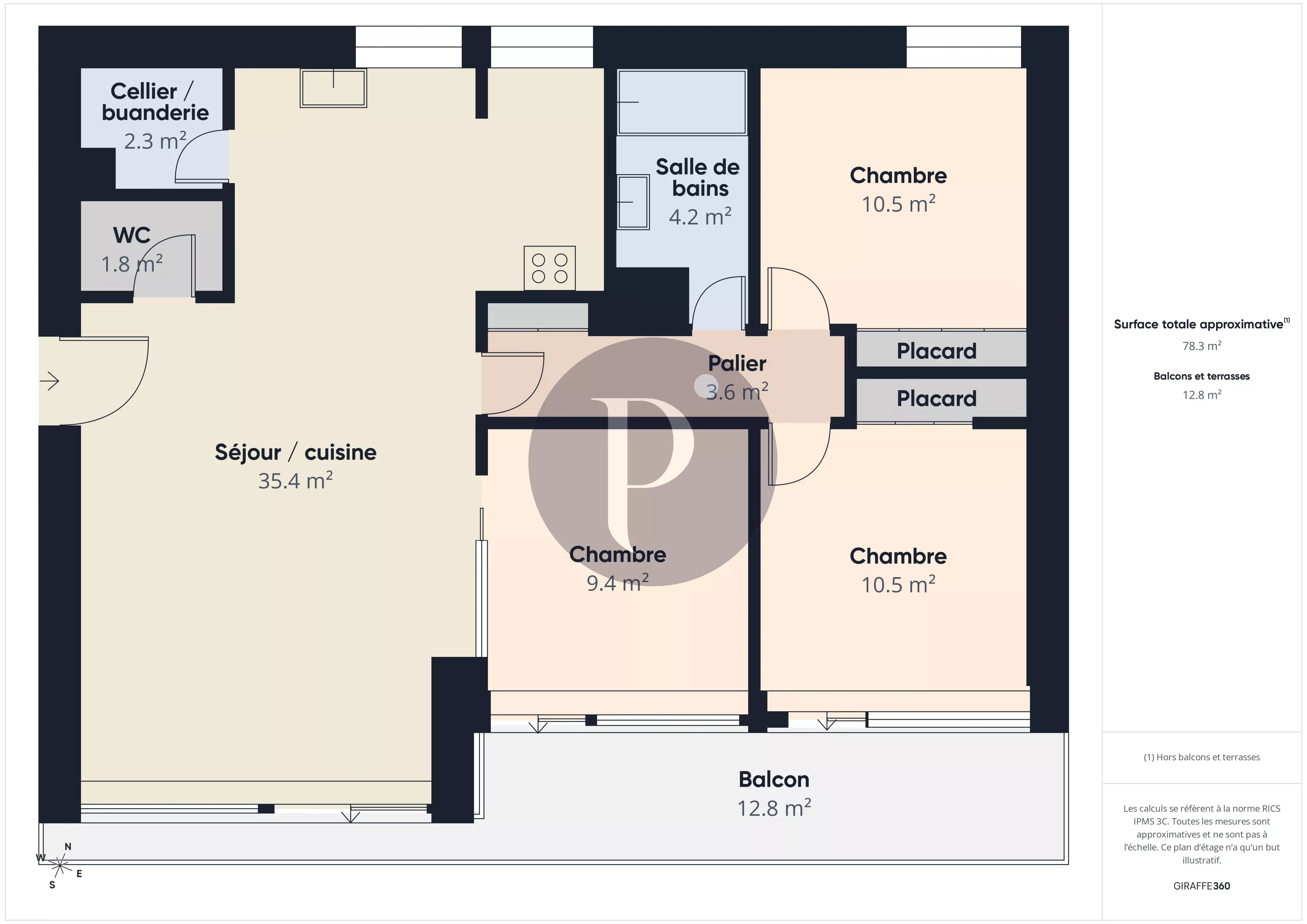 Situé au 4ème et dernier étage, ce magnifique 4 pièces de 78 m² offre un grand séjour traversant ouvrant sur un balcon de près de 13 m² sans vis-à-vis, une cuisine ouverte avec cellier, trois chambres, une salle de bains et des toilettes séparées.
