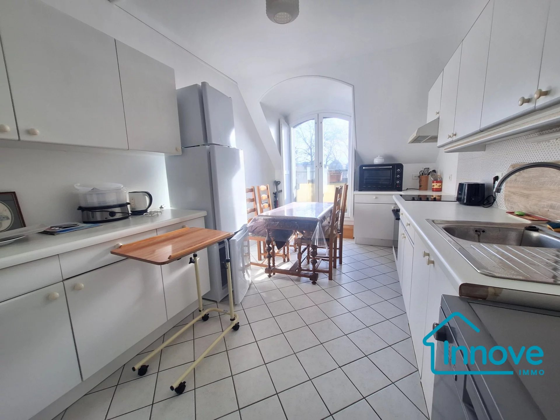 - une grande cuisine (14 m²) aménagée, indépendante et donnant sur le balcon