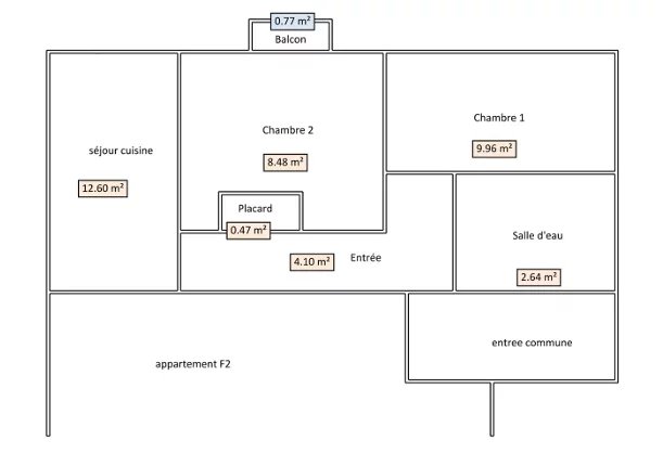 Une entrée indépendante, un séjour lumineux avec cuisine ouverte, aménagée et équipée,2 chambres lumineuses, dont une avec accès au balcon, une salle de douche avec WC .
