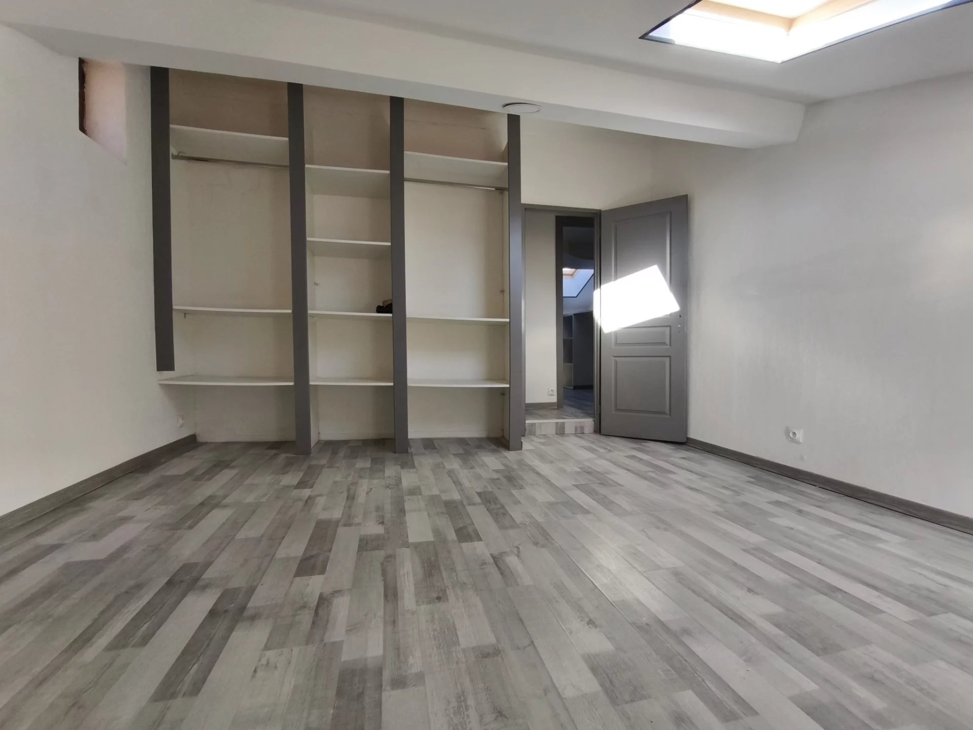 A l'étage 1 grande chambre de 17m2, un grand dréssing et un bureau ainsi qu'une salle d'eau avec WC.