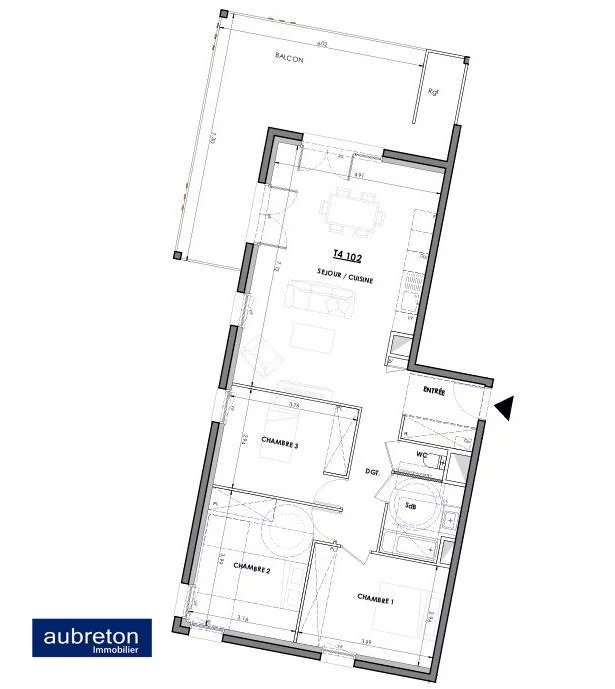 Ce 4P+Cuisine ouverte de 85.50 m² orienté EST, SUD et OUEST avec terrasse de 26.50m².