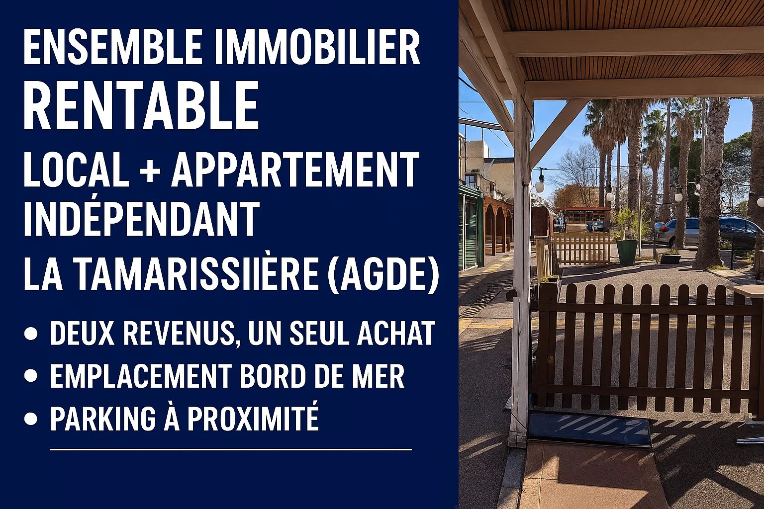 Bord de mer, flux piéton, emplacement stratégique : cet ensemble immobilier est taillé pour un exploitant qui veut performer dès la prochaine saison.