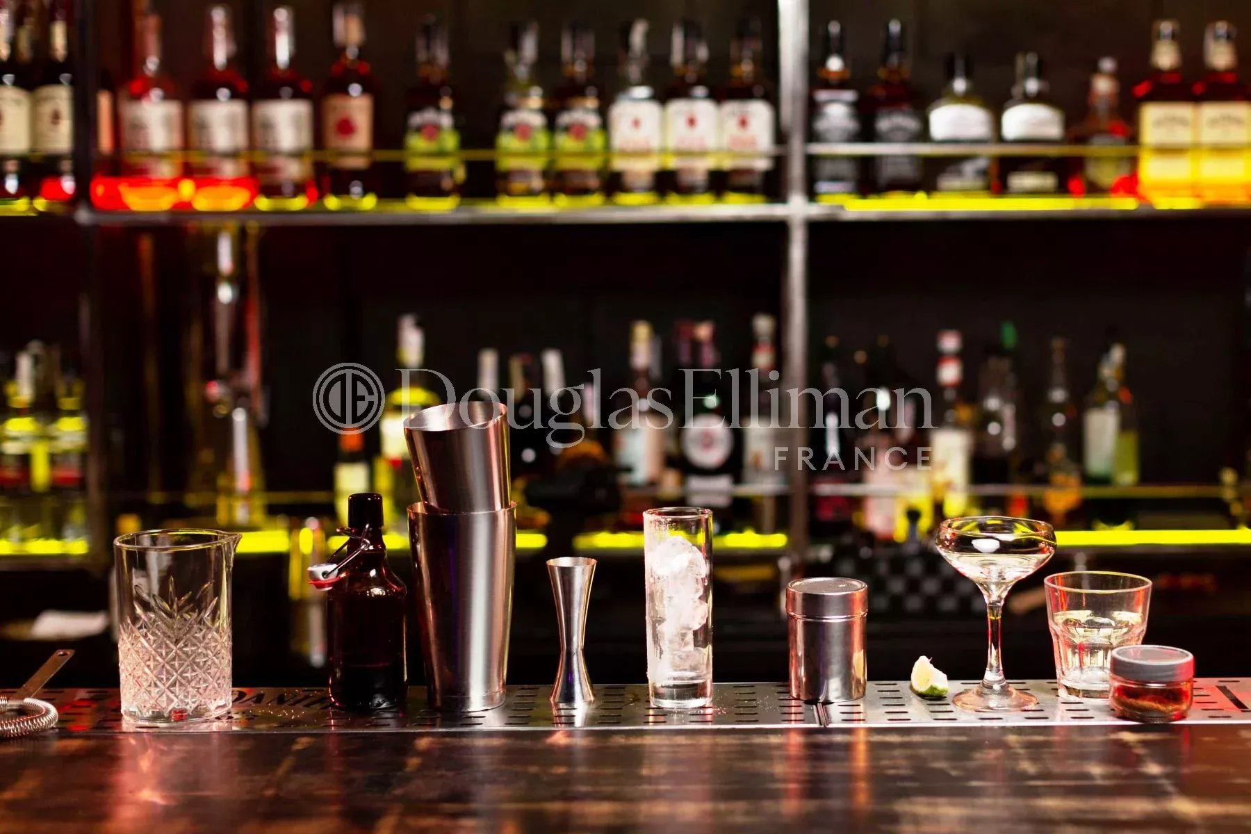 L'intérieur s'étend sur deux niveaux avec une mezzanine, une cuisine de belle taille et une cave/ réserve en sous-sol avec un accès pour les livraisons. La capacité est de 50 à 60 couverts en intérieur et 30 en terrasse.