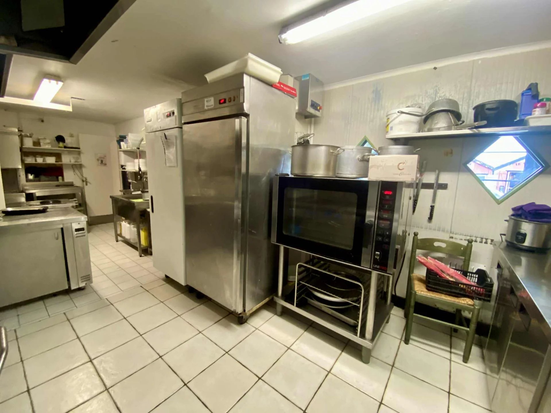 • Grande cuisine professionnelle équipée, avec coin chaud, froid, plonge et espace écaille ouvert sur la terrasse.