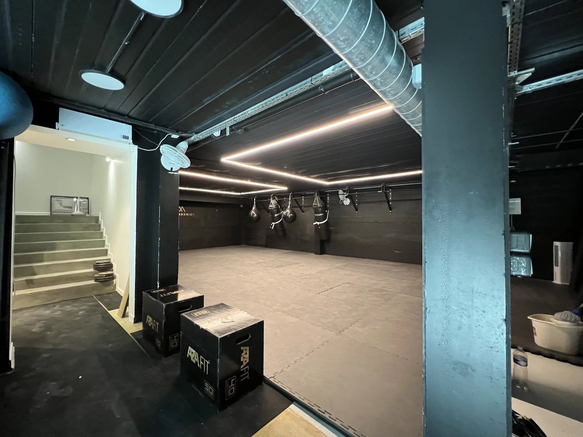 Le lieu est actuellement exploité en salle de sport. L'espace se compose de deux vastes tatamis, deux vestiaires avec WC et un local technique. Système de ventilation adapté aux activités sportives. Nombreuses possibilités d'exploitation notamment: studio d'enregistrement ou photo, salle de yoga, pilates... Prix/m2: 4967€