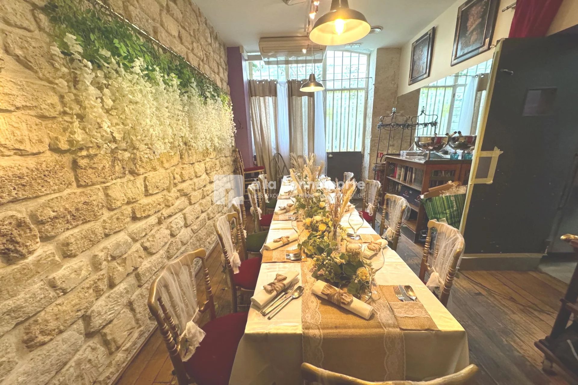 En plus de sa salle principale, ce restaurant de qualité supérieure vous permettra également de disposer d'une cave privatisée de 15 à 20 personnes et d'une salle annexe, l'ensemble permettant ainsi d'accueillir jusqu'à 80 couverts.