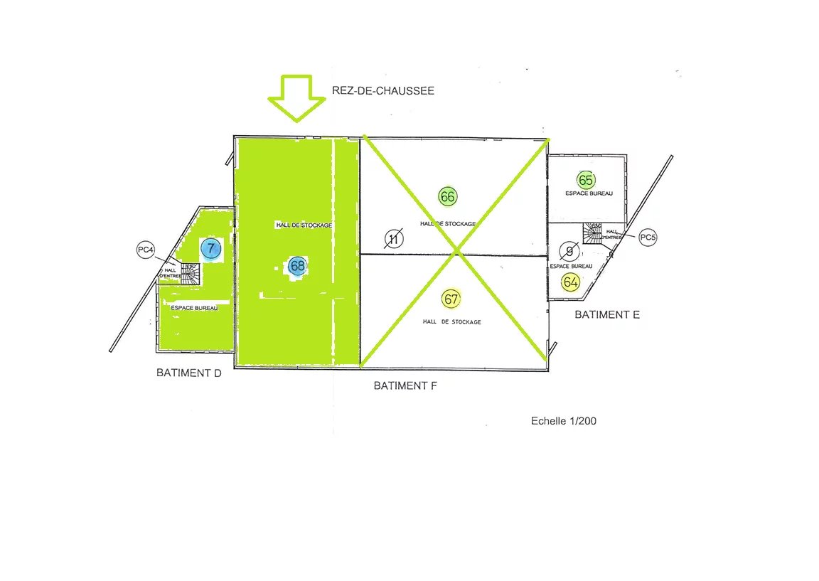 - 1 entrepôt de 480 m2 et mezzanine de 49 m2