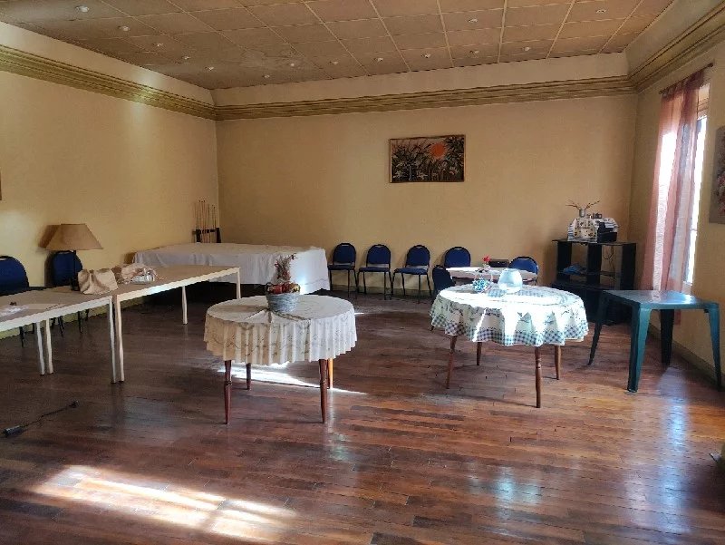 Au rez-de-chaussée: un bar, une grande salle, une cuisine, un WC.