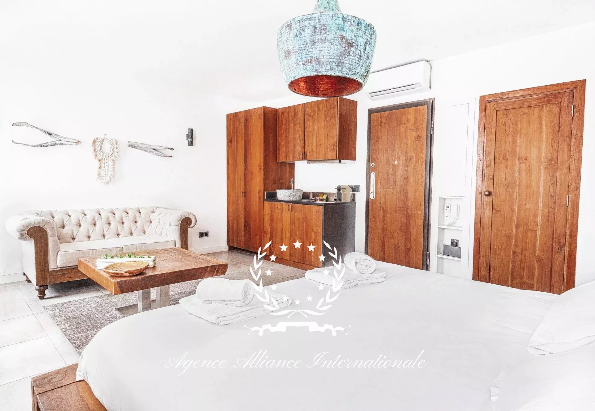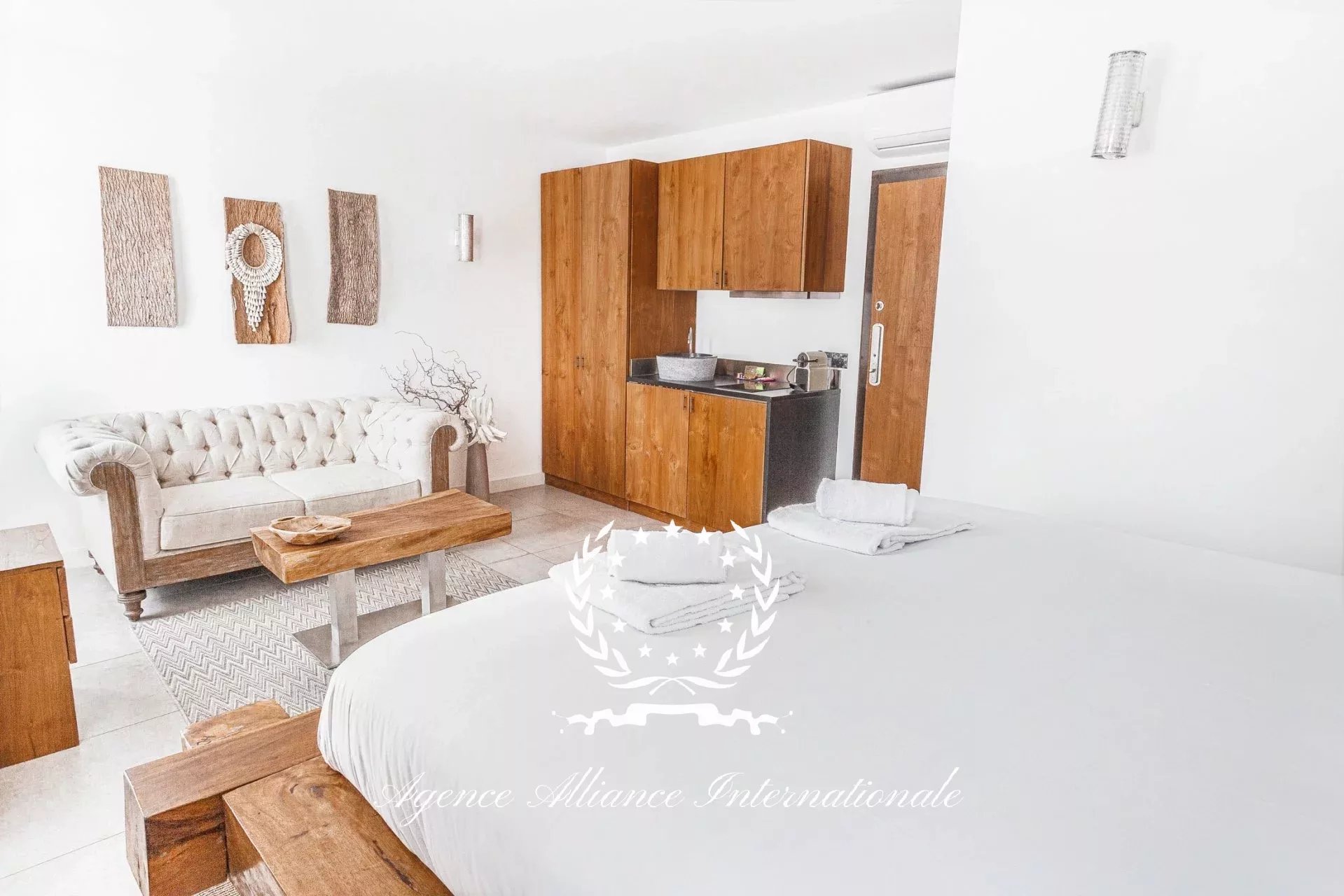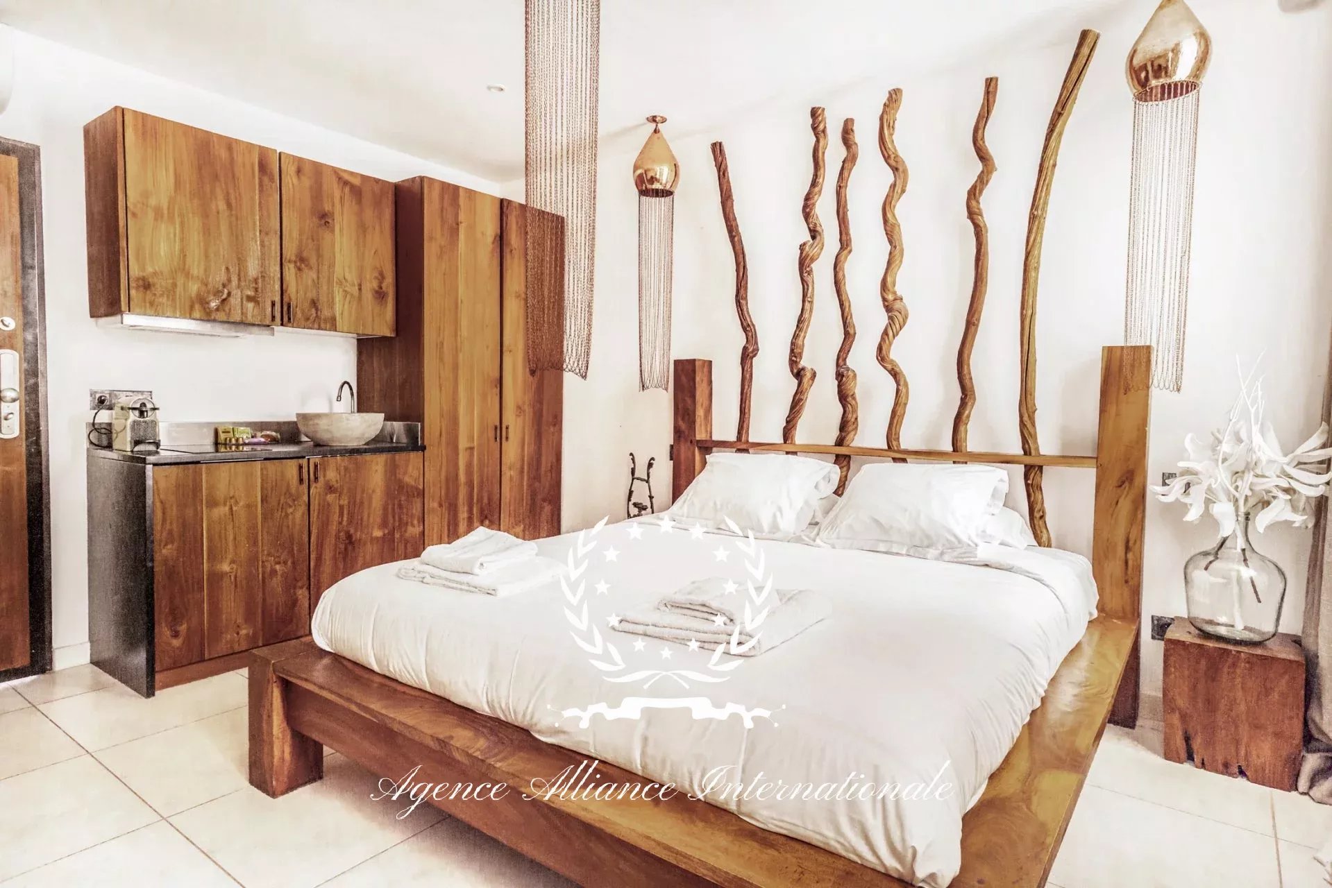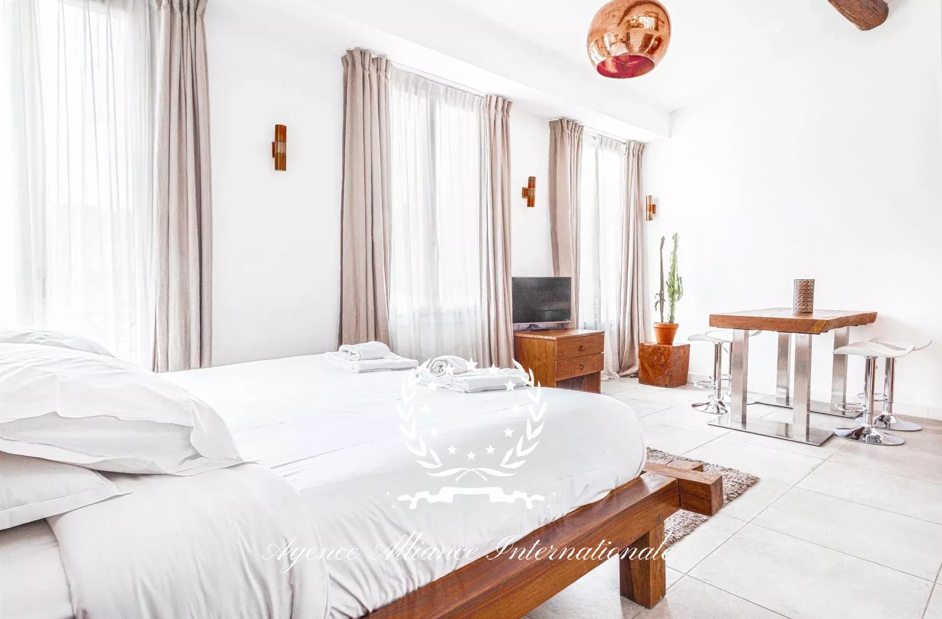 Composé de 2 appartements par étage soit 8 au total avec un local commercial en Rdc de 61m2 pouvant être transformé en logement supplémentaire. Tous les appartements sont équipé de wifi très haut débit, et la fibre optique est également disponible. Chaque appartement est meublé avec un grand lit 2 places, une table, 2 chaises, nombreux rangements le tout dans le style balinais avec un savant mélange en bois brut très chic et des matériaux de qualité pour les salles d’eau, le sol, adoucit par une nuance des teintes apaisantes et relaxante. Véritable havre de paix pour les clients de passage, étrangers ou congressistes…