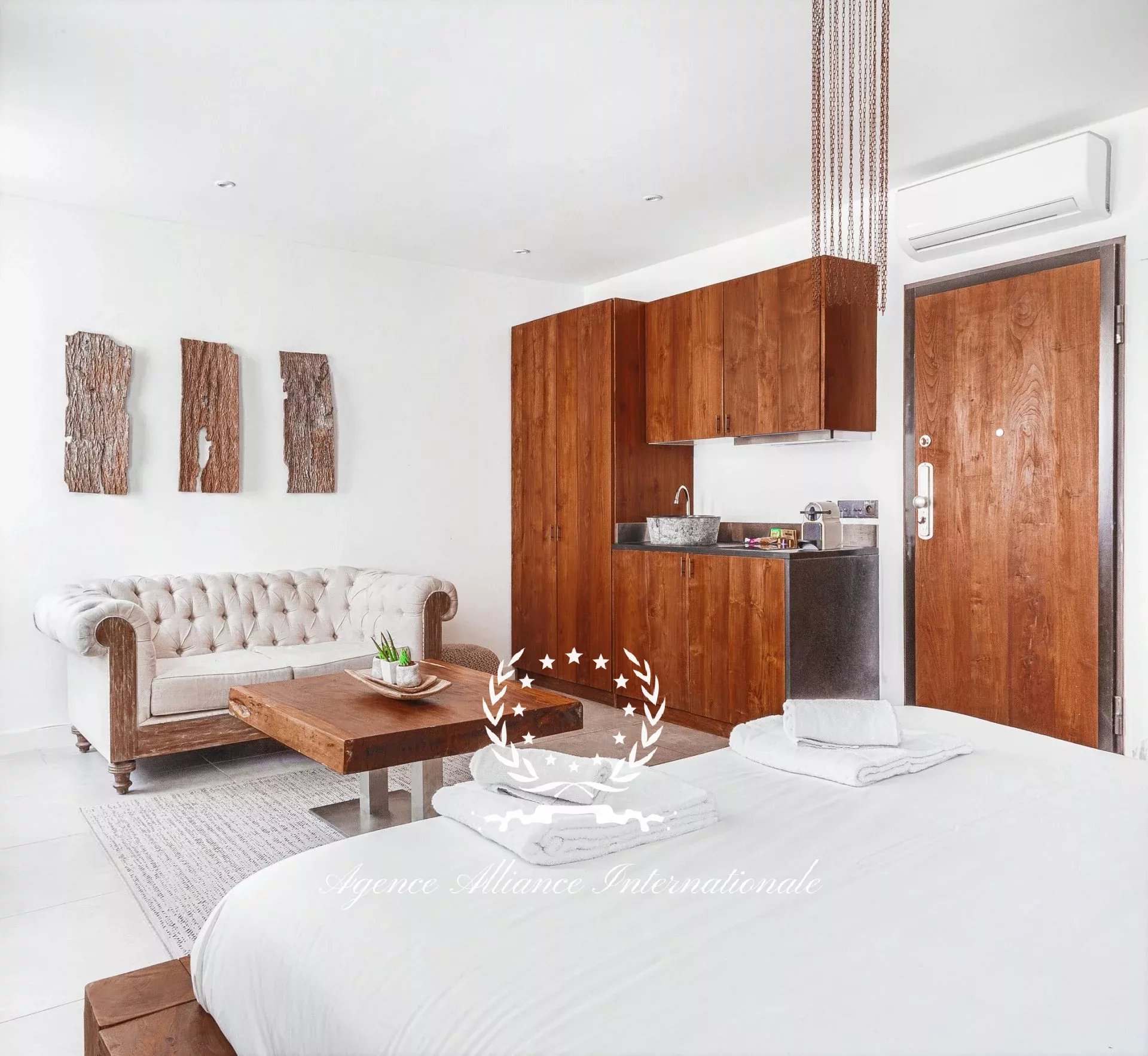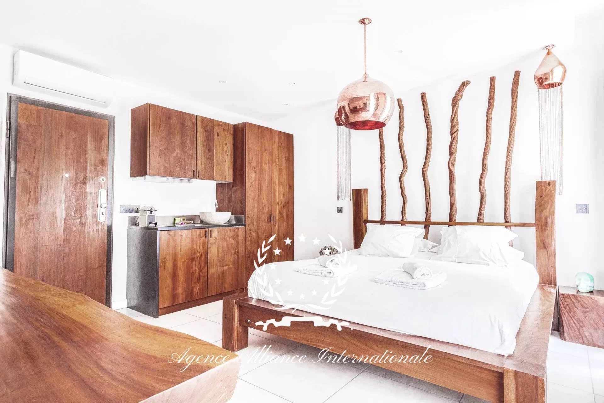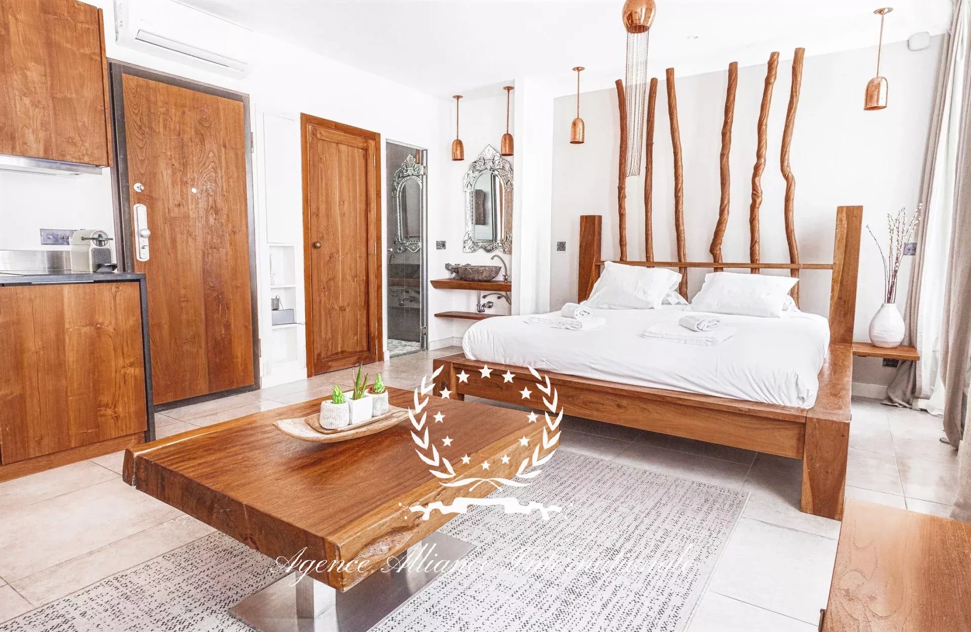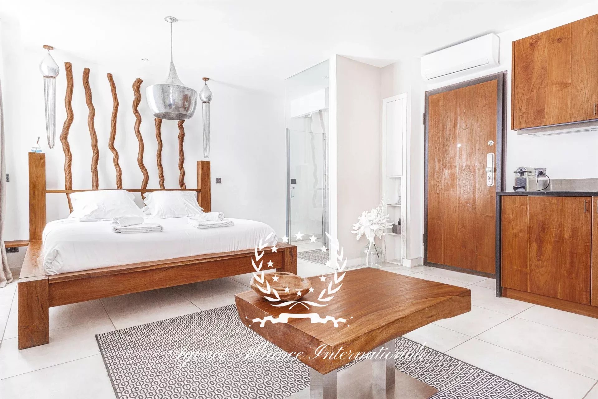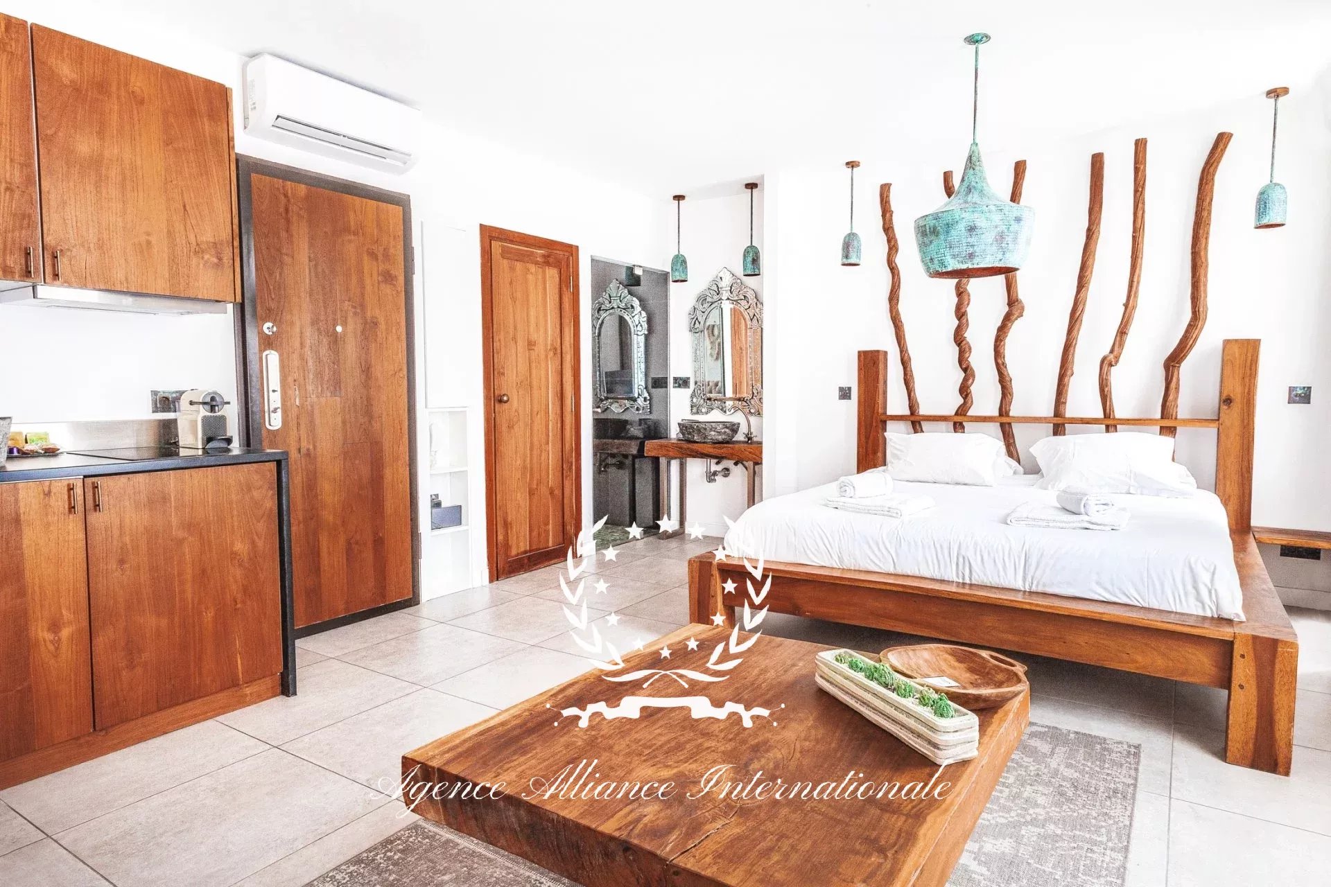 Composé de 2 appartements par étage soit 8 au total avec un local commercial en Rdc de 61m2 pouvant être transformé en logement supplémentaire. Tous les appartements sont équipé de wifi très haut débit, et la fibre optique est également disponible. Chaque appartement est meublé avec un grand lit 2 places, une table, 2 chaises, nombreux rangements le tout dans le style balinais avec un savant mélange en bois brut très chic et des matériaux de qualité pour les salles d’eau, le sol, adoucit par une nuance des teintes apaisantes et relaxante. Véritable havre de paix pour les clients de passage, étrangers ou congressistes…