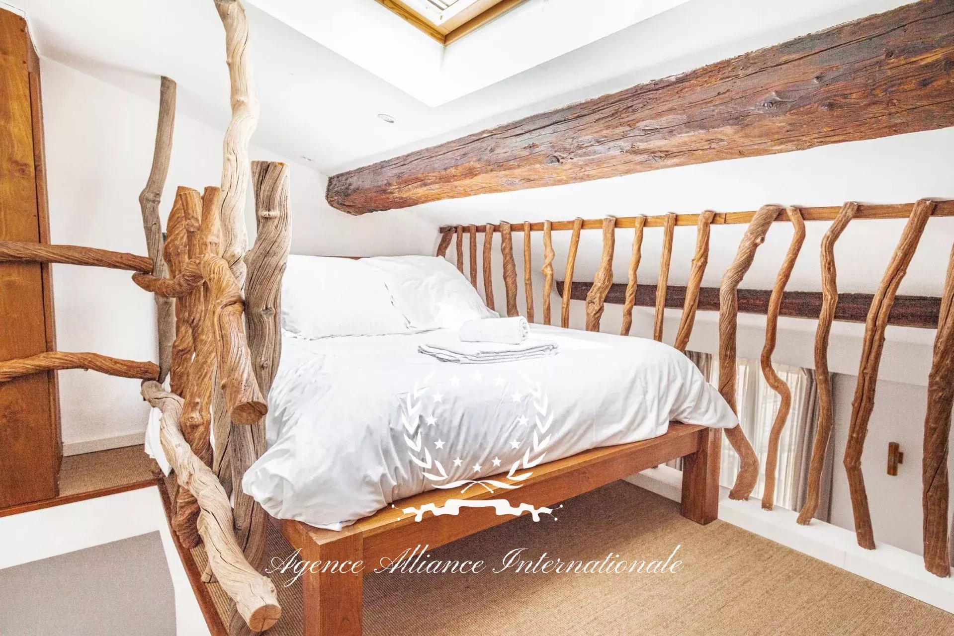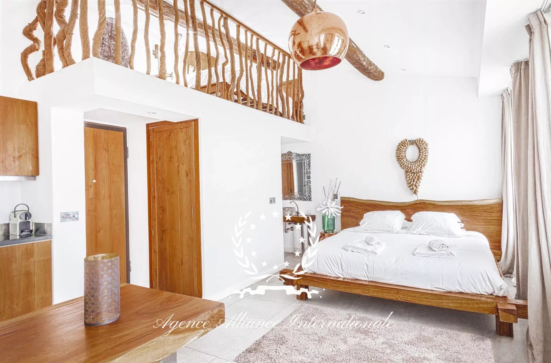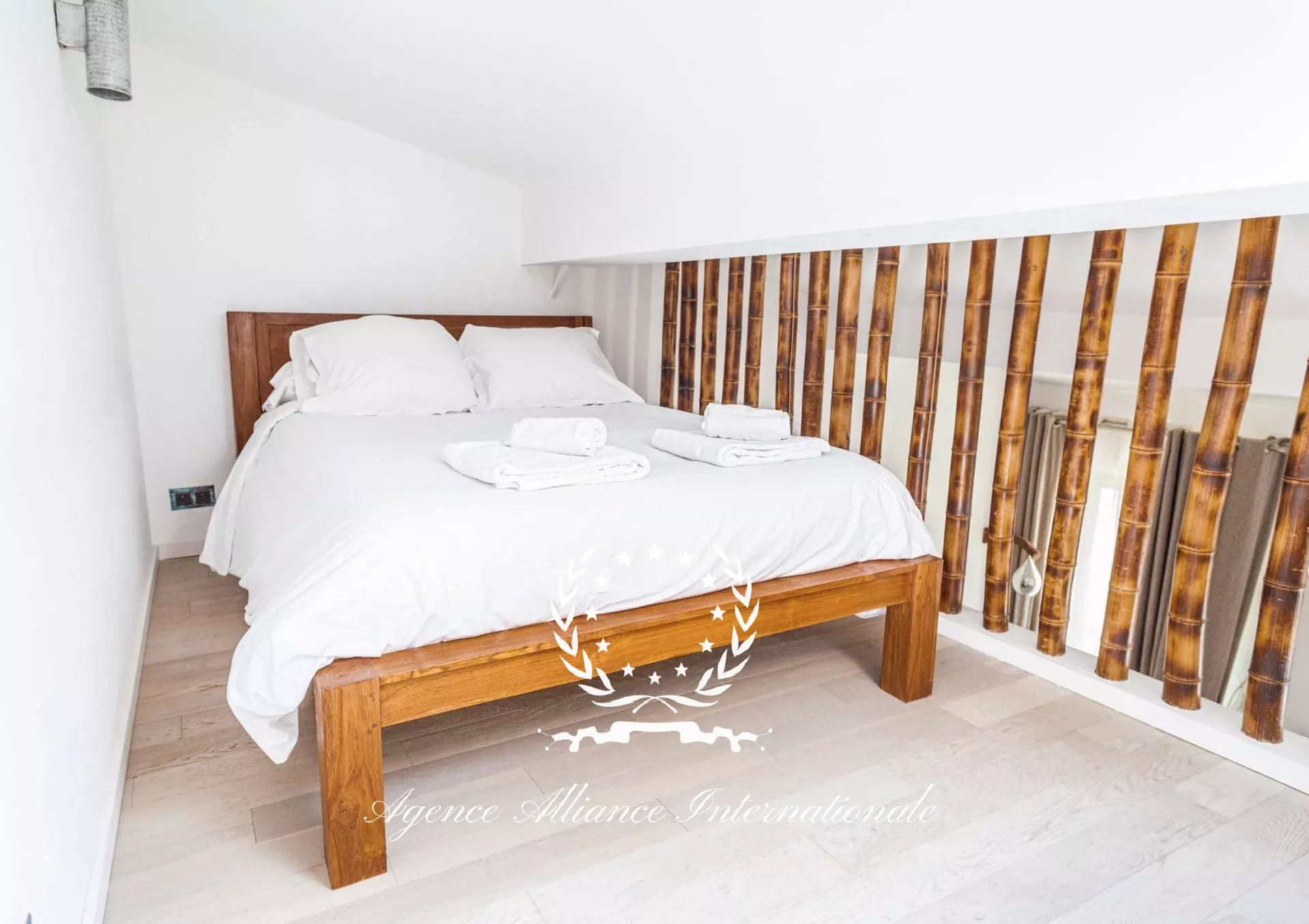 Les 2 appartements du niveau R+4 ont un espace avec une mezzanine supplémentaire aménagée avec un lit 2 places en supplément. Soit un total de couchage pour vingt personnes pour cet immeuble de standing.