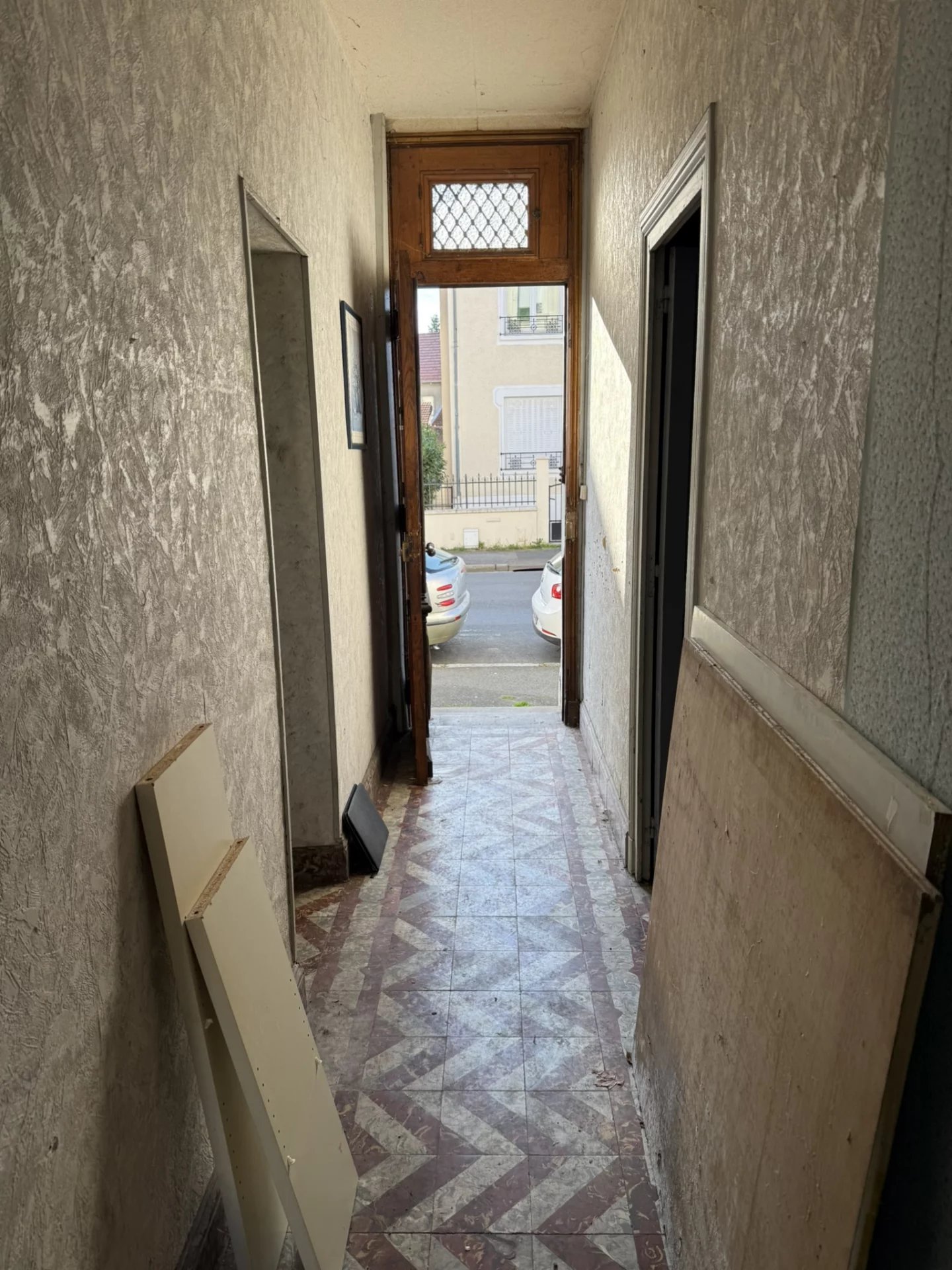 Composé au rdc de 4 pièces : possibilité de créer un appartement de 20 m2 à gauche et de 27 m2 à droite. Prévoir installation de compteurs EDF.