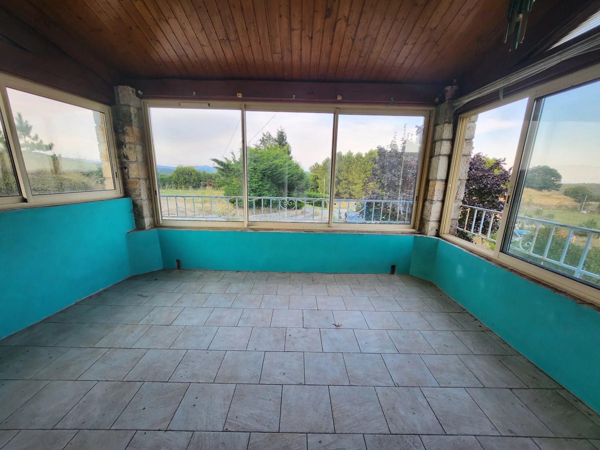 -1 logement 86,6m2 complètement habitable, à rafraîchir, chauffage central (fuel), séjour avec véranda et belle vue sur 3 cotés, terrasse de plain pied