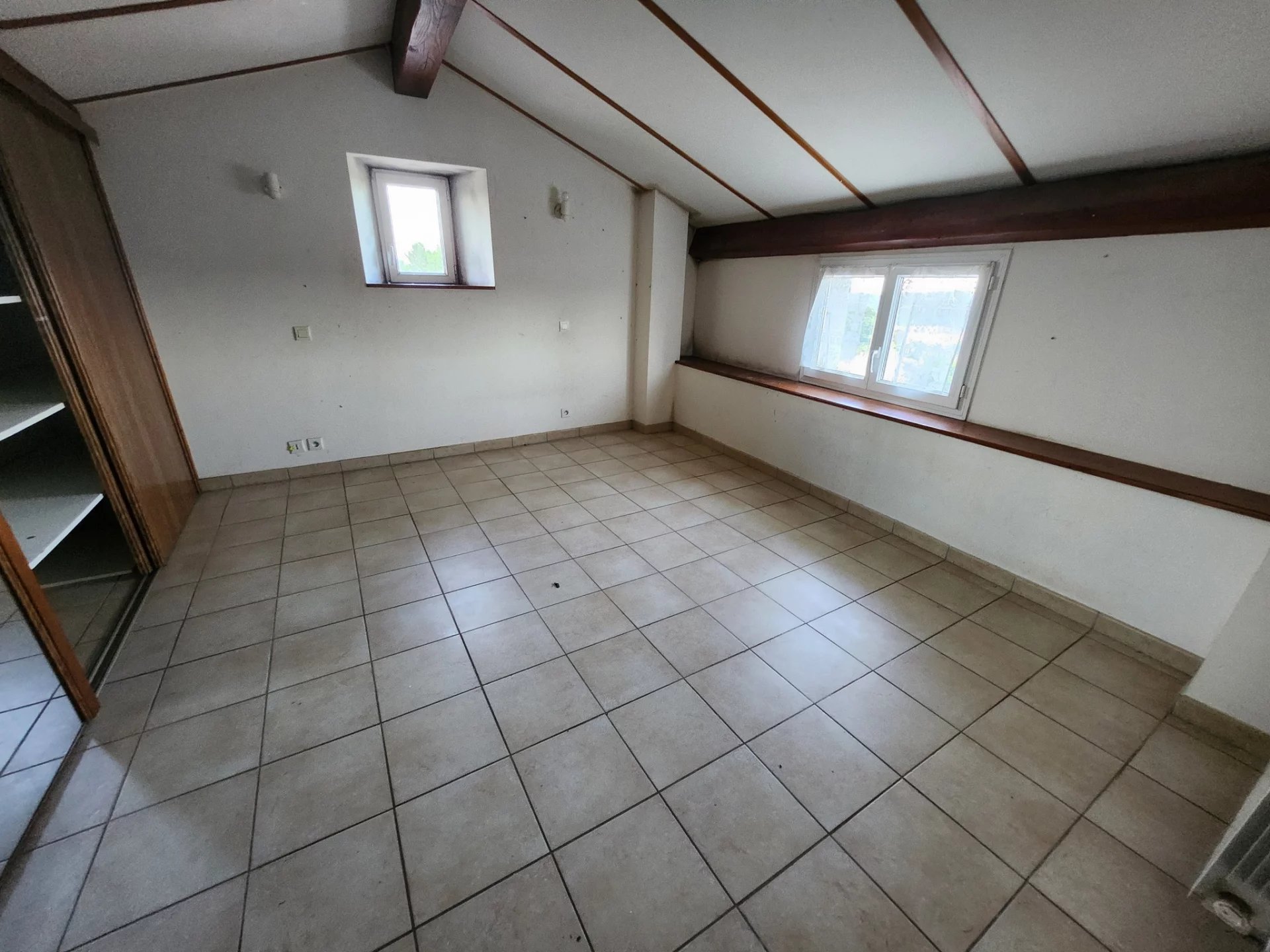 -1 logement à mettre au goût du jour, jolis radiateurs en fonte (pas de chaudière mais circuit pouvant servir pour pompe à chaleur), terrasse 1o