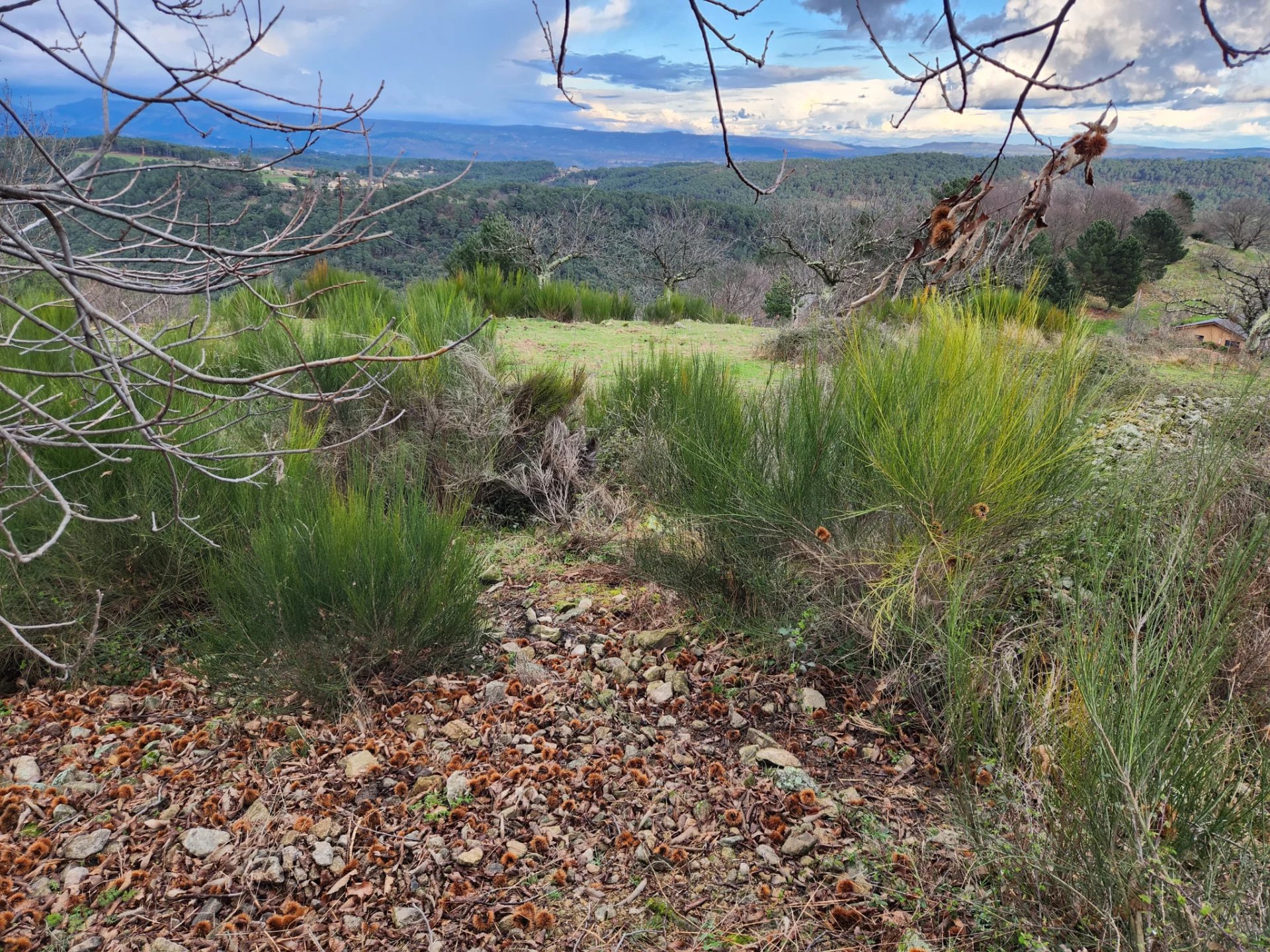* Plus de 1ha (11894 m2) de terrain dont 3913 m2 attenants composé de terres et jardin dont une parcelle platte servant de parking (pourrait abriter une piscine avec vue sur la montagne) - 1500 m2 autour de la maison sont plats - la châtaigneraie non-attenante de 6500m2 se trouve pas très loin de la maison - la parcelle non-attenante avec la source est aussi un jardin - une petite vigneraie non-attenante à remettre en état