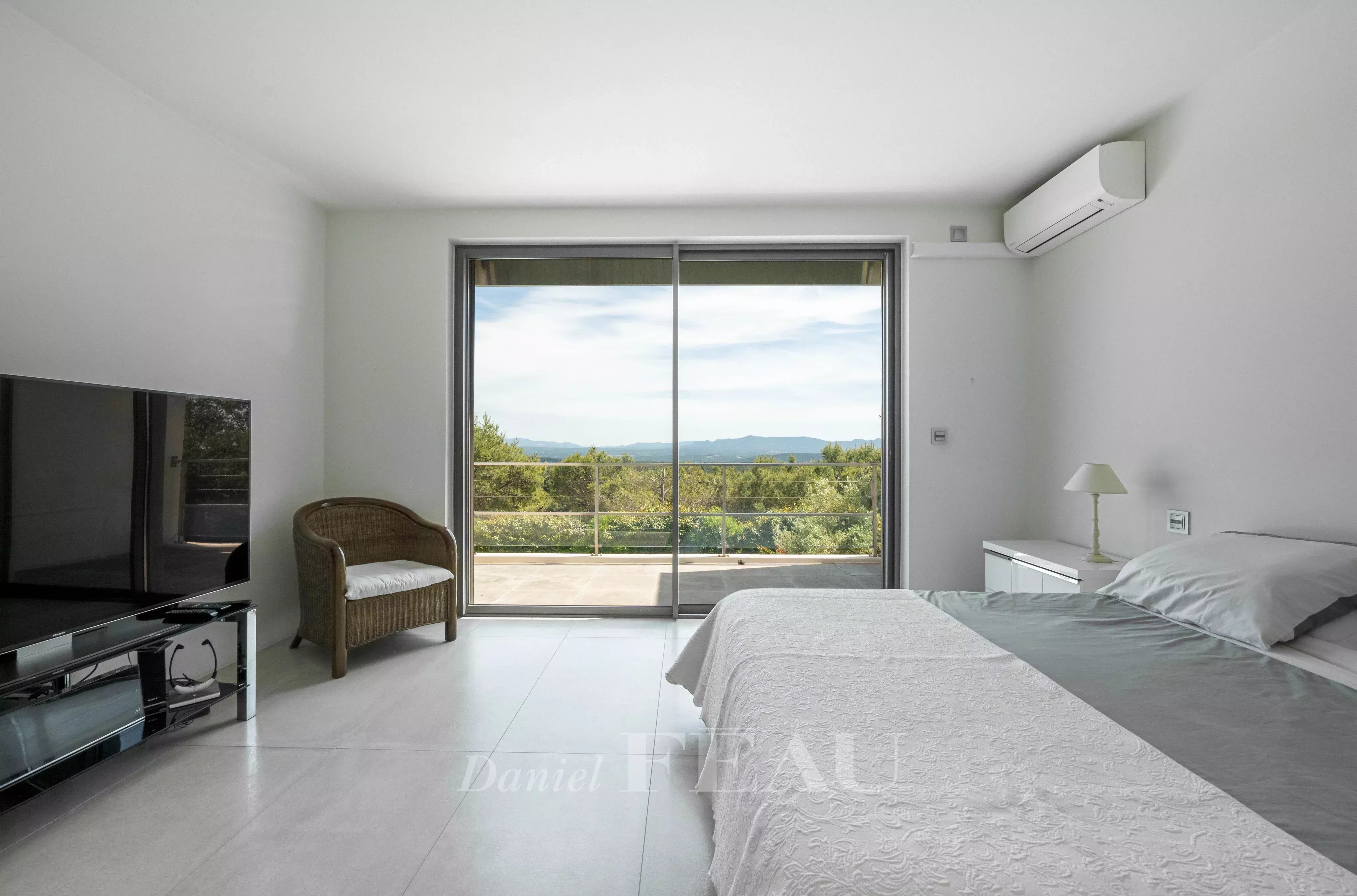 Tel un tableau, la montagne Sainte Victoire s’élève face à cette maison d’architecte à la vue contemplative.