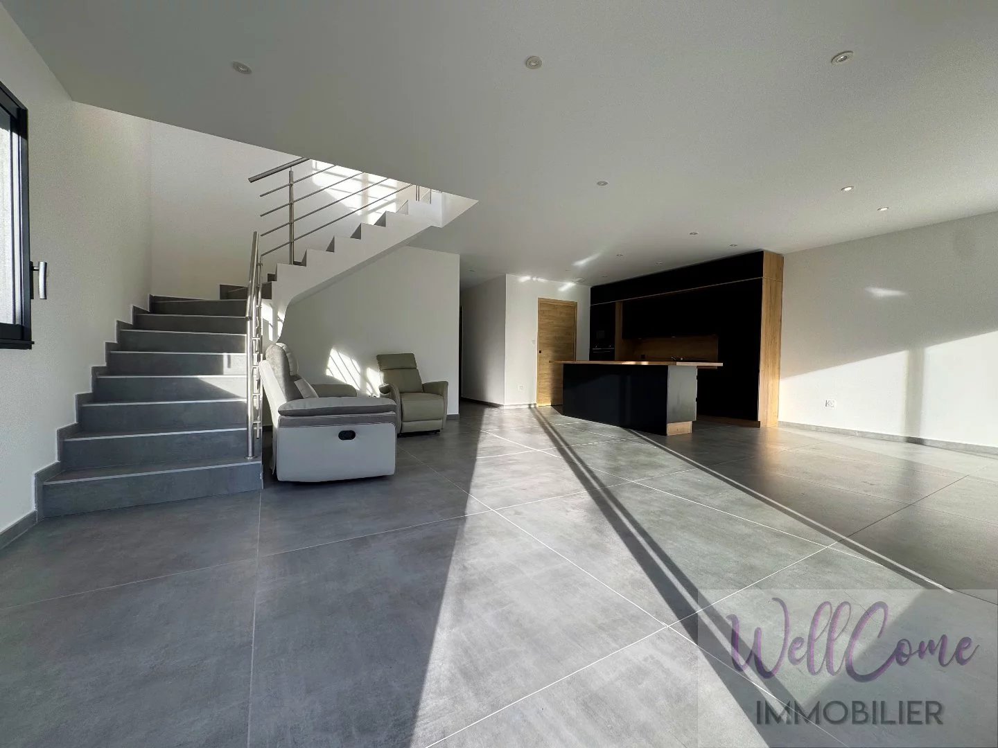 699 000 €Au Viviers-du-Lac, à seulement 2 minutes du centre du village et 5 minutes du lac du Bourget - Découvrez cette villa moderne T5 de 146,46 m² édifiée en 2022 sur un terrain clos de 413 m². Le rez-de-chaussée offre un vaste séjour lumineux de 48,54 m² avec cuisine équipée et îlot central, ouvrant sur une terrasse et un jardin exposés plein Sud. Une suite parentale avec salle deau, un WC suspendu indépendant et une buanderie avec accès direct au garage complètent ce niveau. À létage, un espace bureau avec balcon distribue 2 chambres, une seconde suite parentale avec salle deau, une salle de bains et un WC indépendant. Un garage avec porte motorisée et deux places de stationnement extérieures privatives viennent parfaire cet ensemble. Côté confort : chauffage par pompe à chaleur air/eau avec plancher chauffant, menuiseries aluminium double vitrage et volets roulants électriques. Un bien rare, alliant confort moderne et cadre de vie privilégié, idéal pour une famille en quête de tranquillité à proximité du lac et des commodités. Contactez votre agence WellCome Immobilier pour organiser une visite de ce bien dexception ! Honoraires : 25 000 TTC (3,73 %) inclus charge acquéreur (670 000 hors honoraires)