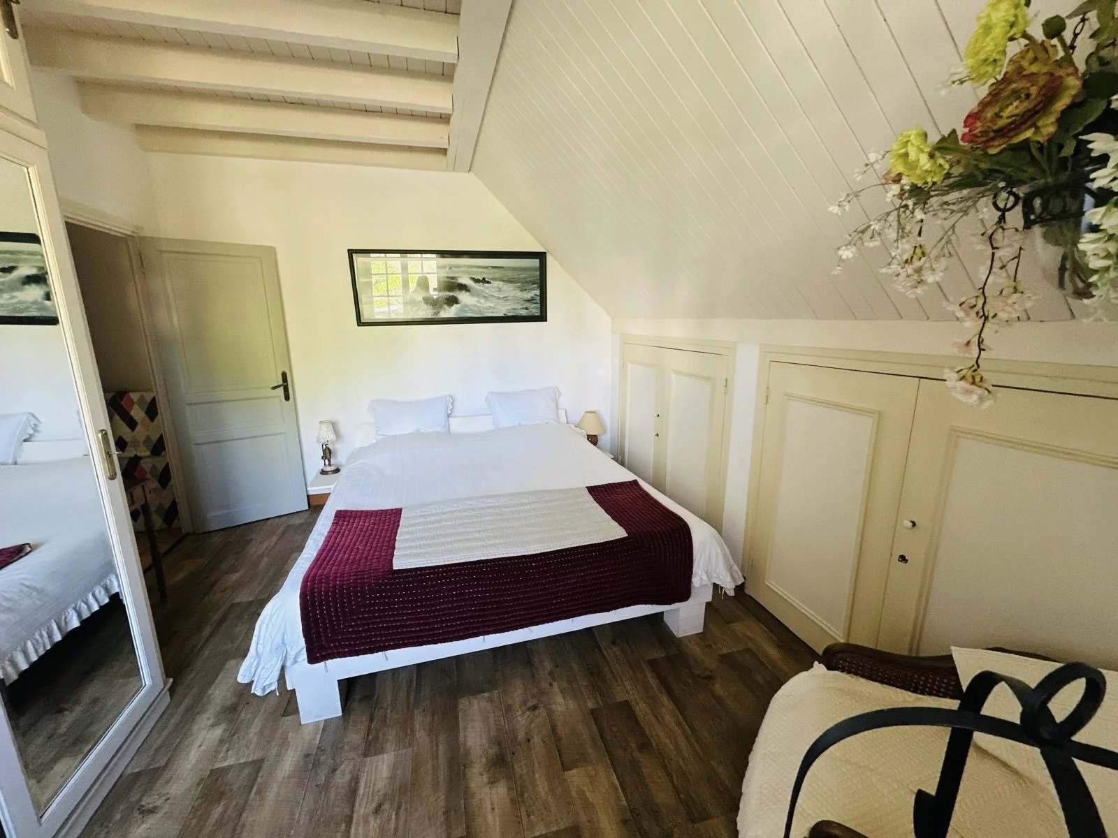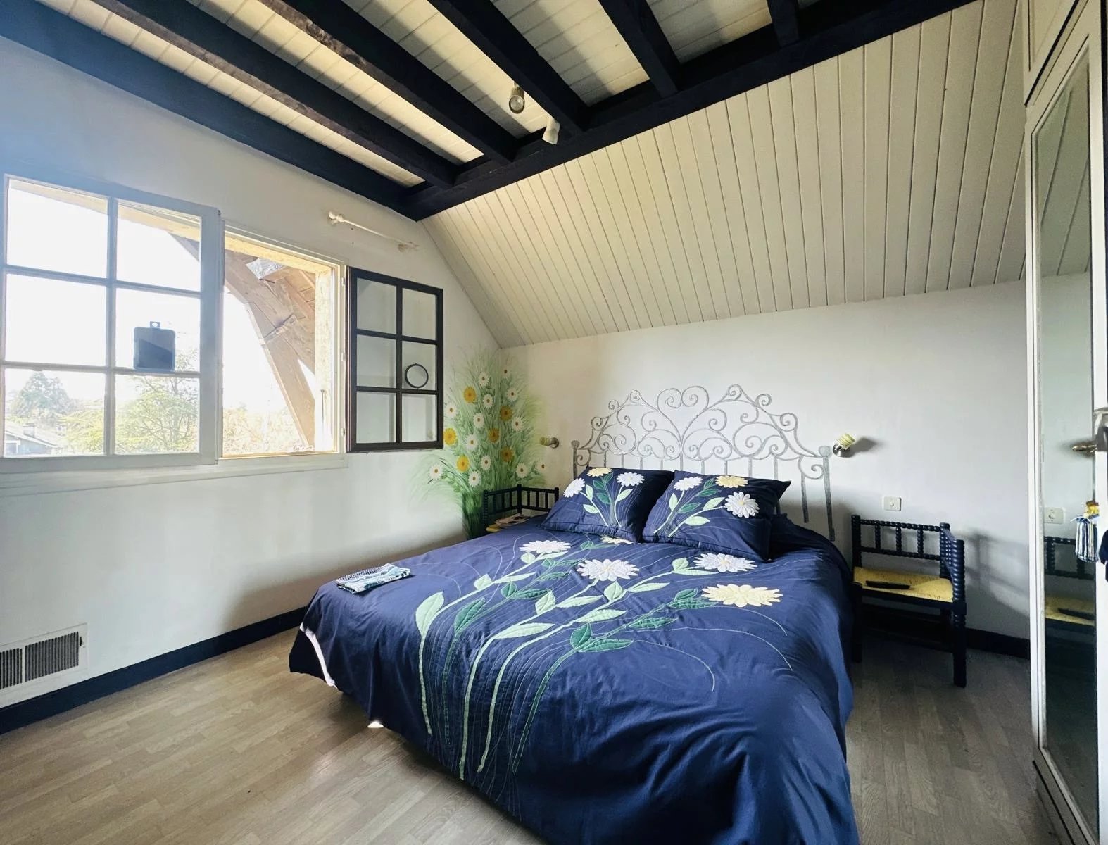 La maison dispose également d’un grenier aménagé dans les combles, offrant un espace supplémentaire pouvant accueillir un atelier, un bureau ou une chambre d’appoint.