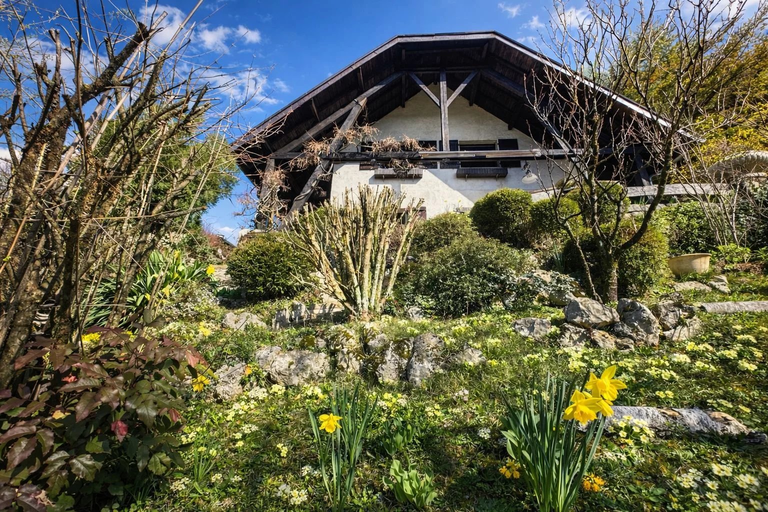 Blottie dans un écrin de verdure sur les premières hauteurs d’Aix-les-Bains, cette maison familiale de 121 m² séduit dès les premiers instants par son charme authentique, sa luminosité et son atmosphère inspirante. Véritable maison d’artiste, elle a été pensée et aménagée avec goût, offrant des espaces de vie chaleureux où chaque détail raconte une histoire.
