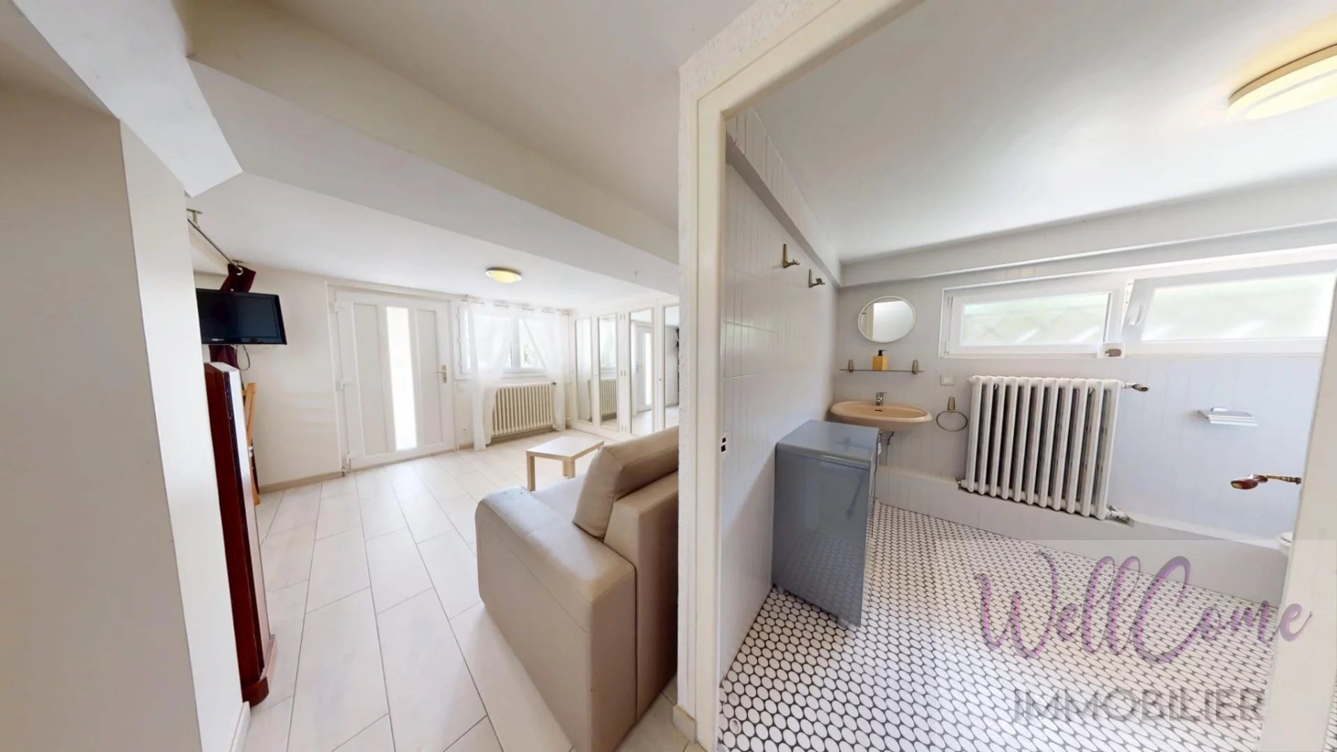 314 000 €Située dans le secteur résidentiel recherché de Chantemerle à Aix-les-Bains, cette maison de caractère développe 243 m² de surface au sol dont 190 m² habitables. Elle est implantée sur un terrain de 914 m² clos et arboré.. Elle offre de jolies sur le Revard et la Dent du Chat, et profite dune belle exposition Sud, Est et Ouest. L'environnement est calme, tout en restant proche des commodités et des transports. La maison dispose également d'un logement de type studio que vous pouvez transformer en T2 en ajoutant la pièce bureau attenante. Agencement: Niveau principal : Belle pièce de vie lumineuse de 45 m² avec cuisine ouverte Poêle à bois Accès direct à un balcon plein Sud avec vue dégagée sur les montagnes Deux grandes chambres de 18 m² et 20 m² avec balcons Salle deau moderne avec douche à litalienne WC indépendant Étage : Deux chambres supplémentaires Espace bureau idéal pour télétravail Nombreux rangements Salle de bain et WC séparé Rez-de-chaussée espace indépendant Studio avec cuisine ouverte et salle de bains avec WC Pièce de 17 m² attenante Un escalier intérieur relie l'ensemble des niveaux de la maison. Annexes: Chaufferie Garage de 30 m² Grande cave enterrée Vous cherchez une maison familiale dans un secteur résidentiel à quelques minuites du centre ville et des commodités? N'hésitez pas à nous contacter. Honoraires à la charge du vendeur