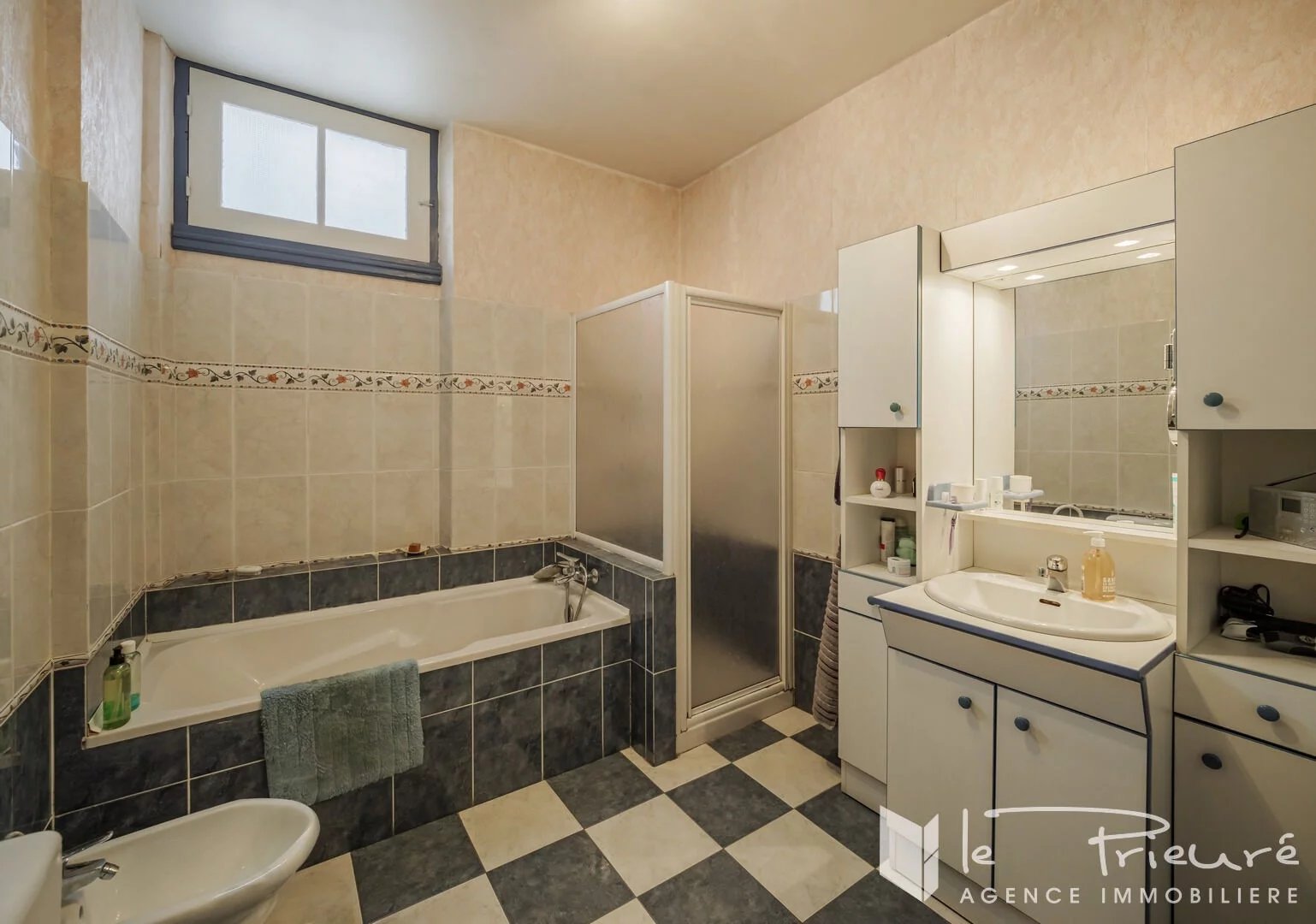 Au rez-de-chaussée, une entrée accueillante avec de vastes rangements, agrémentée de belles boiseries et de carreaux de ciment. Celle-ci mène à un espace de vie de 60m² au total, accessible par le garage et situé en rez-de-jardin. Ce niveau comprend un bureau spacieux d'environ 38 m², une chambre, une salle de bains avec toilettes, ainsi qu'une buanderie. Cet espace, selon vos besoins, peut être transformé en un appartement indépendant pour un regroupement familial ou un projet locatif.