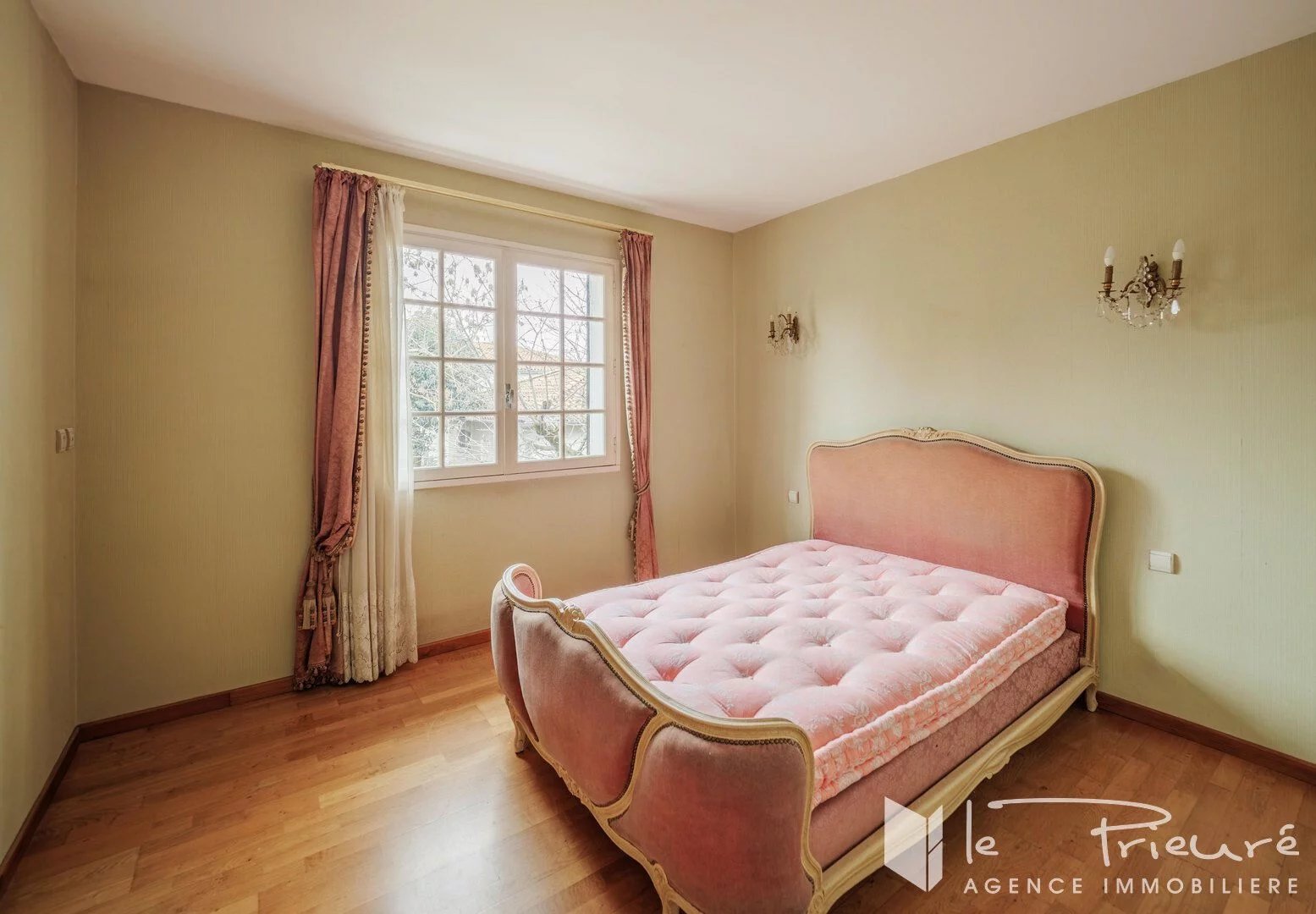 À l'étage, un palier dessert la cuisine, un double séjour climatisé avec cheminée à foyer ouvert. Cet espace, séparé par une simple cloison, peut être facilement ouvert pour offrir une pièce de vie agréable d'environ 45 m², prolongée par un balcon filant. On y trouve également trois chambres supplémentaires, une salle de bains et des toilettes séparées.