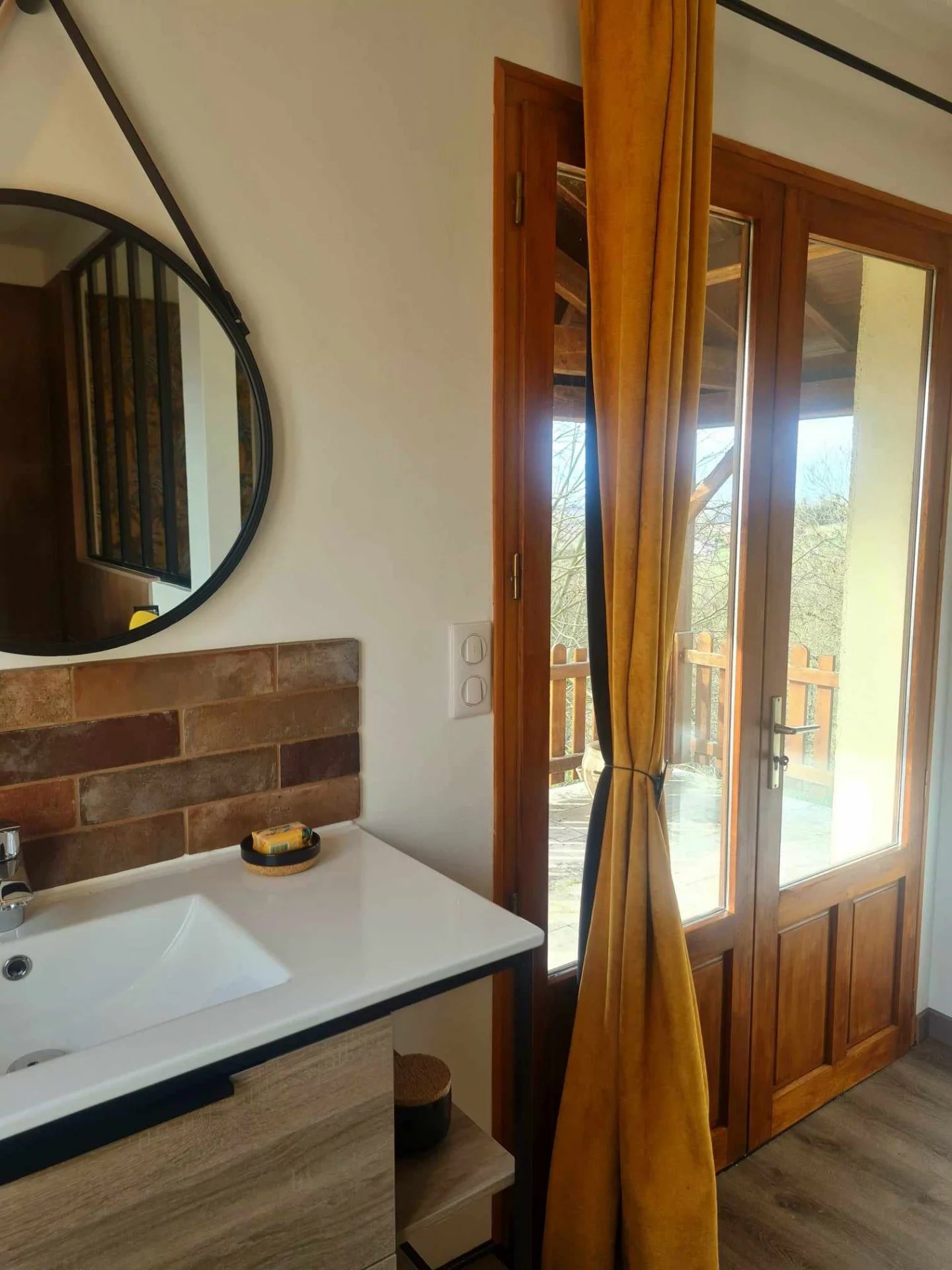 En continuité toujours, le couloir au plafond cathédrale faisant apparaître les charpentes dessert une chambre de plein pied, une salle d'eau, un wc et une cave sous escalier.