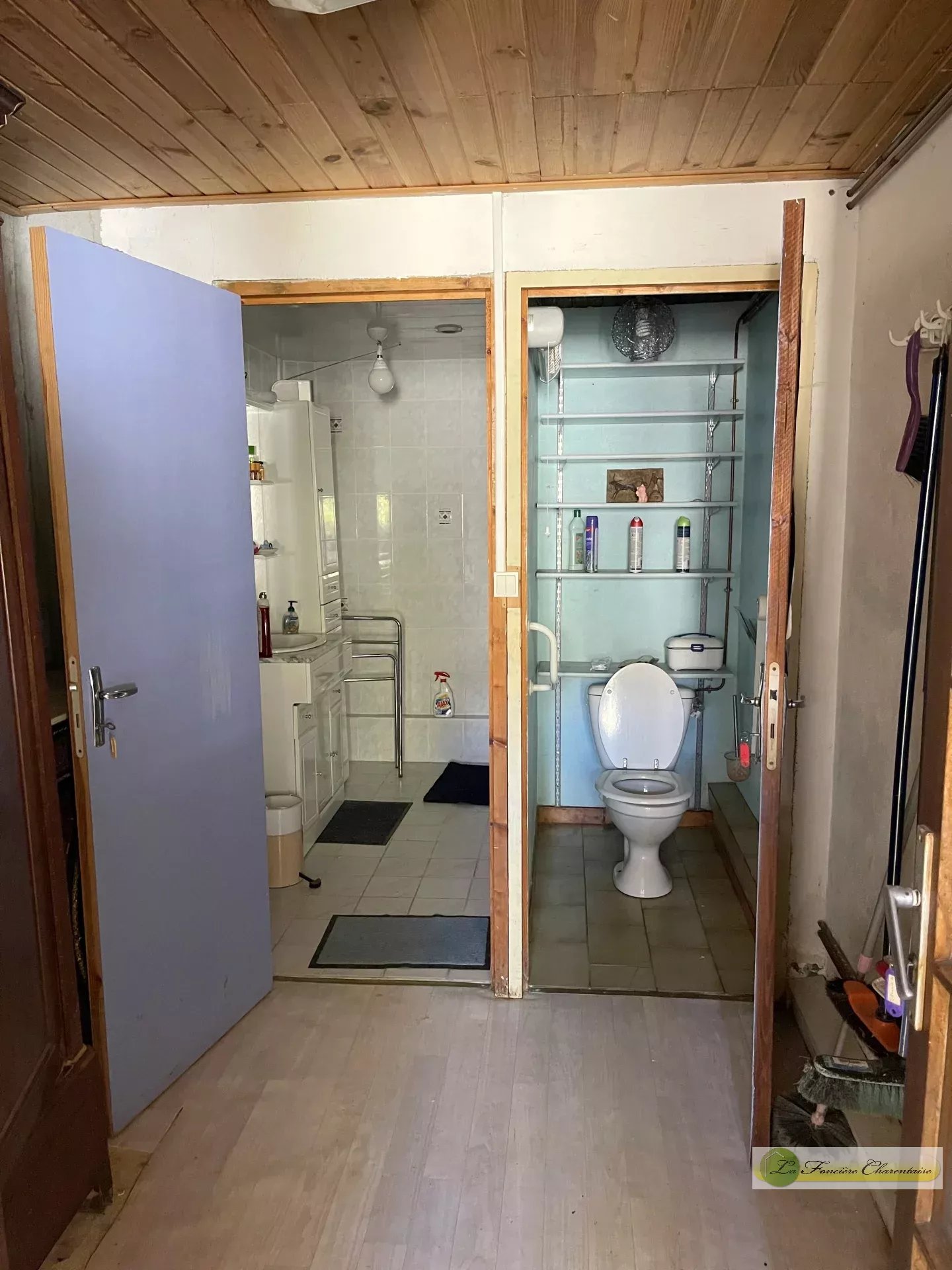 Maison secondaire de pays avec son jardin clos de murs d'environ 300m². Elle se compose d'une véranda desservant d'un côté une cuisine aménagée et séjour ouvert avec cheminée ouverte, dégagement , salle d'eau, toilettes, d'une autre part une pièce à finir d'aménager donnant sur jardin, idéale pour une chambre et bureau en rez-de-chaussée, à l'étage 2 chambres . Atelier. nombreuses possibilités d'aménagement, assainissement non conforme. Toiture en bon état.