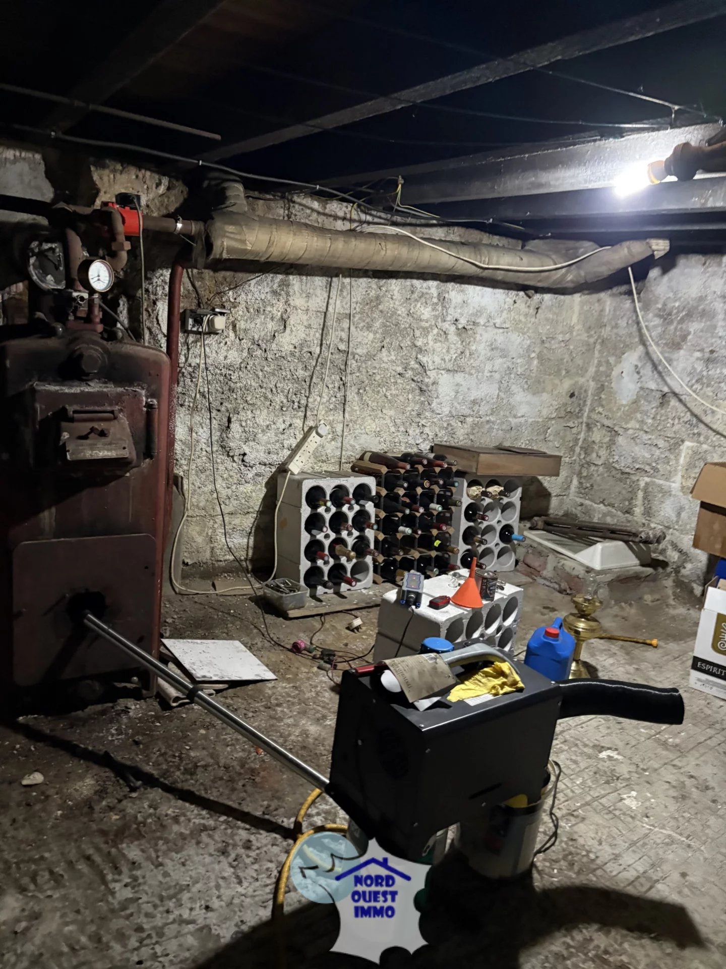 Sous sol cave, avec chaudière fuel hors service.Huiseries en survitrage.