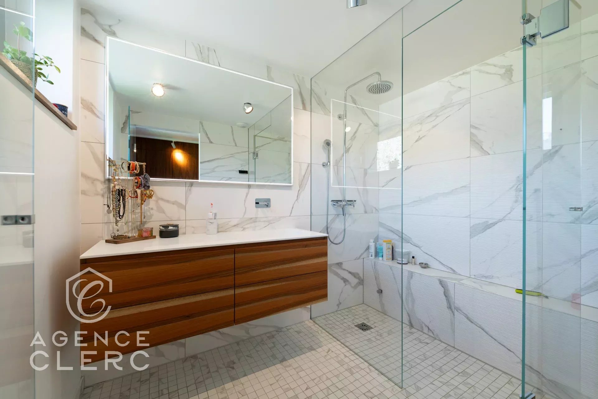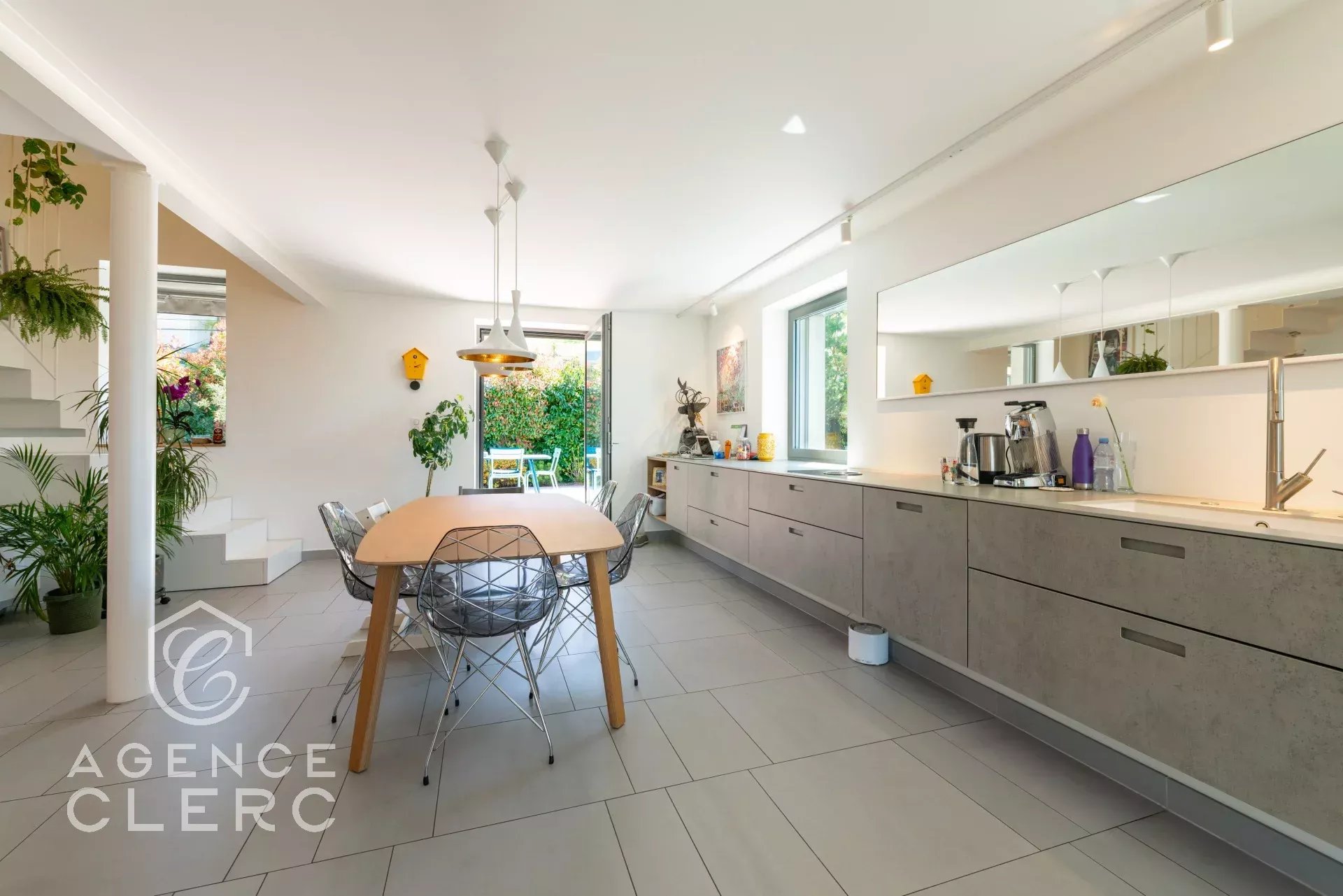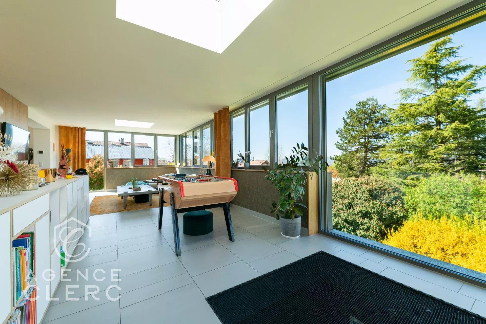 Annecy le Vieux, découvrez cette maison de 240 m² habitables (320 m² utiles), 3 chambres, 2 salles de bains, et un studio indépendant au rez de chaussée, joli terrain de 792 m² agrémenté d'une piscine, située dans un quartier calme avec un accès aux lignes de bus à proximité immédiate, vue sur la montagne du Parmelan. Garage double
