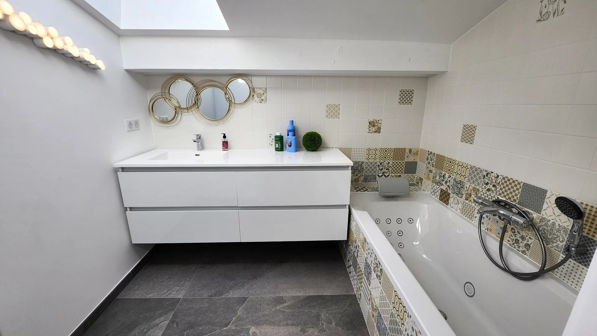 travail en céramique effet marbre, chaque détail a été pensé pour votre confort !