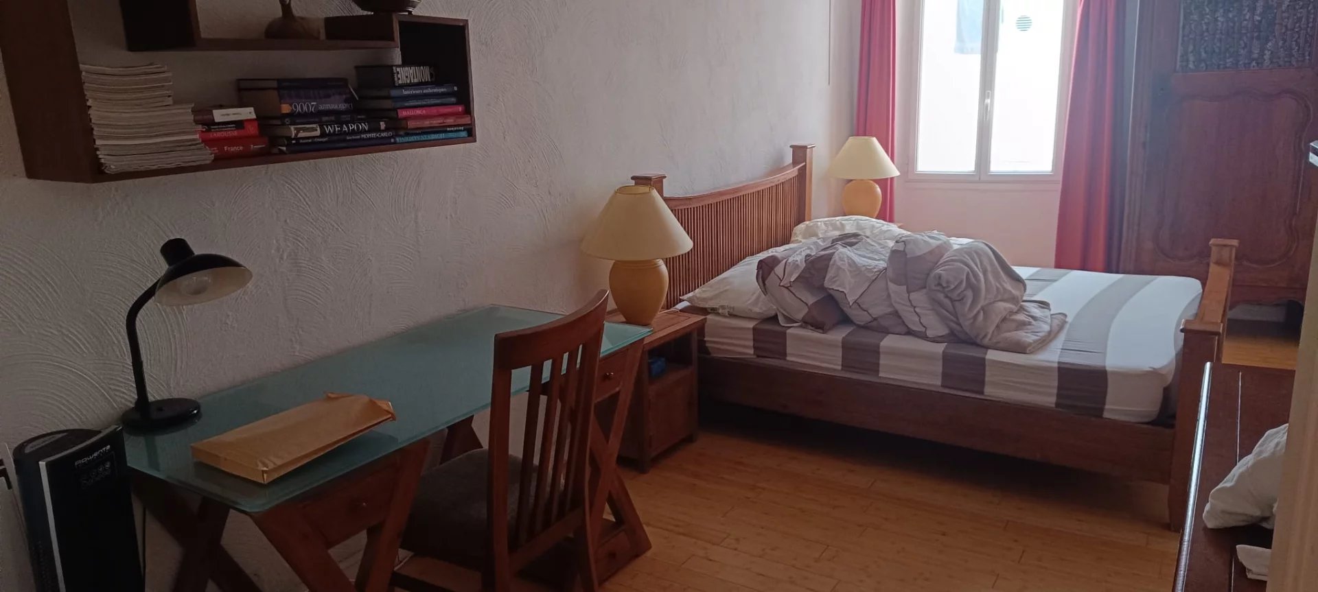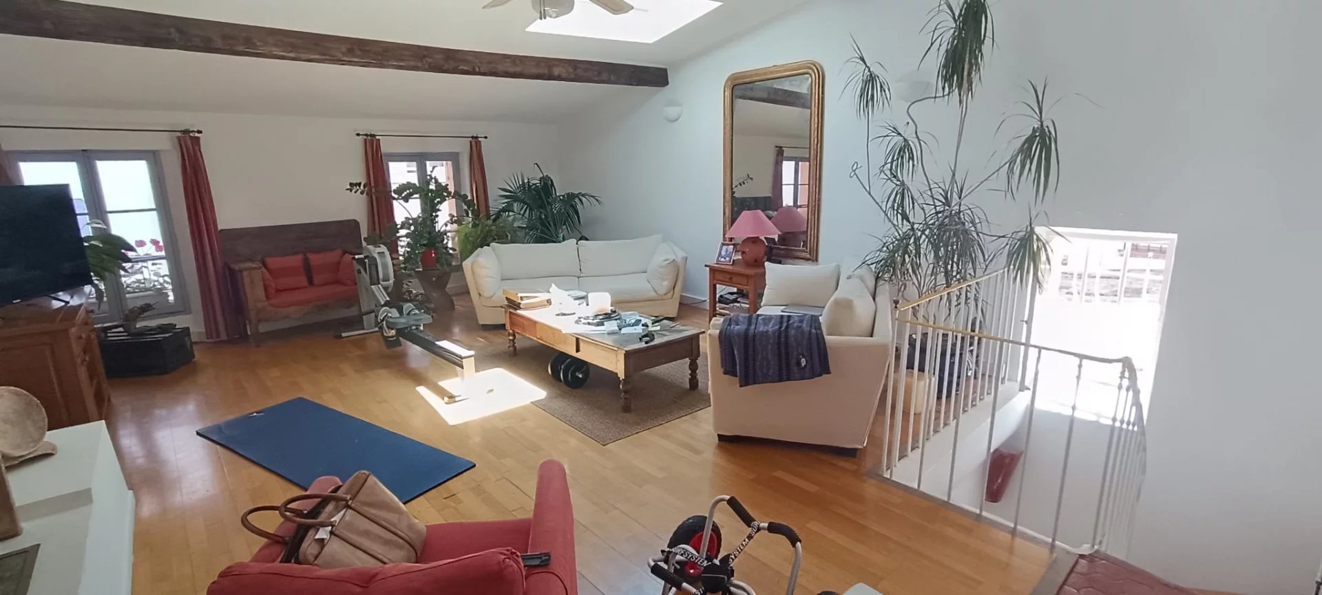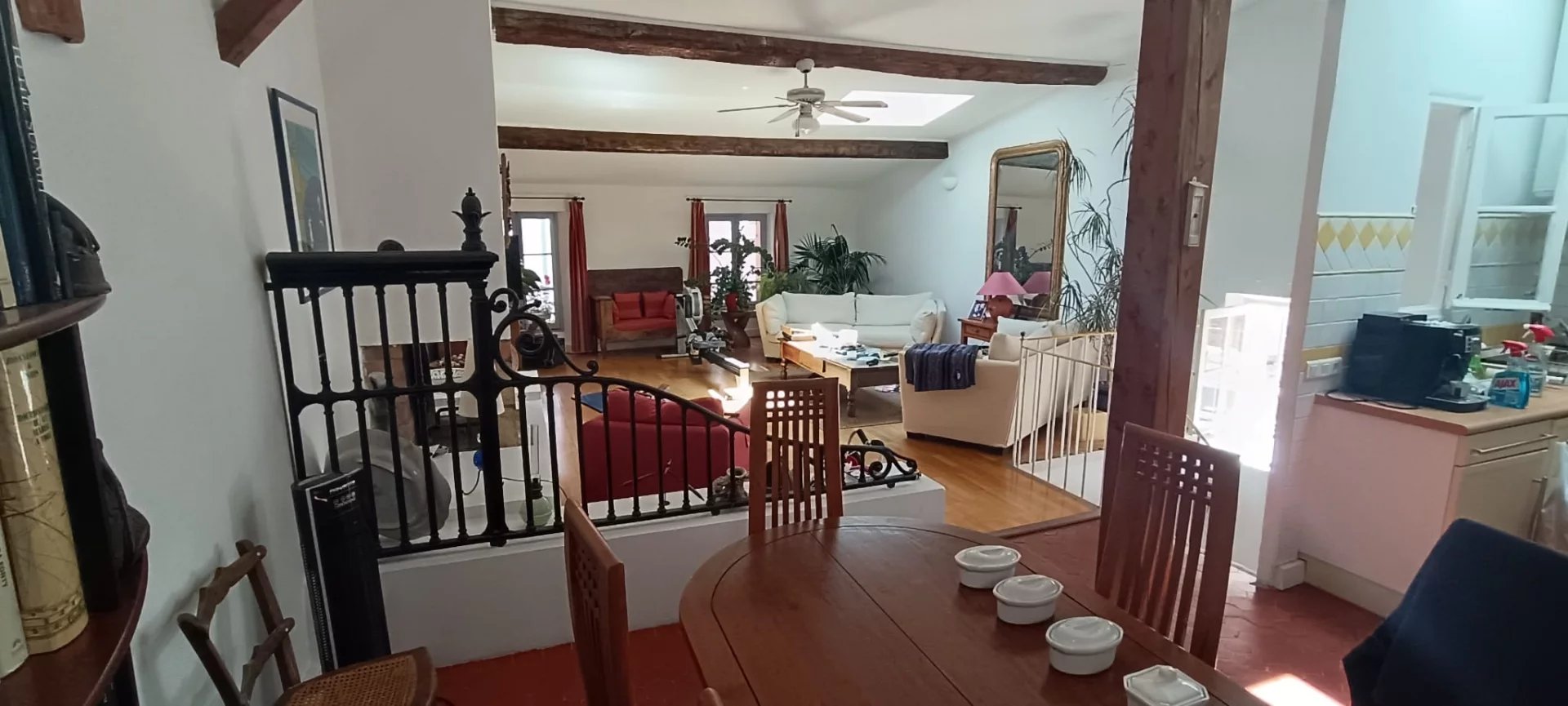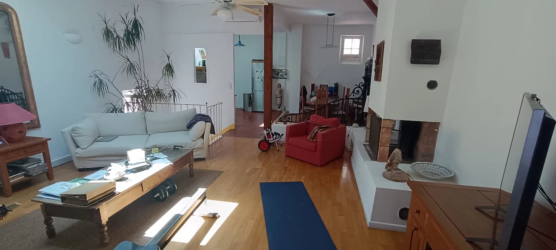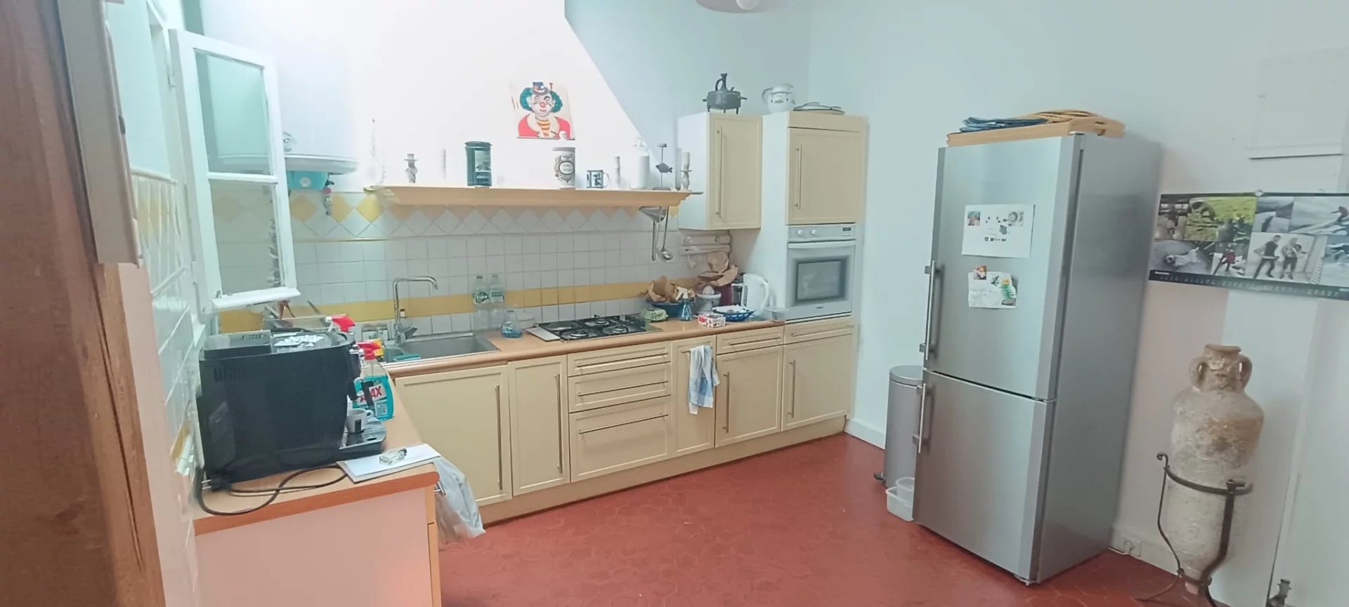 Actuellement, cette maison dispose de deux entrées distinctes, deux cuisines, deux salles d'eau, deux immenses chambres et d'une pièce de vie de 60 m² au dernier étage...